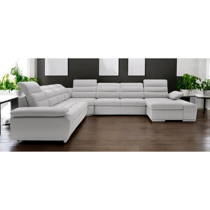 The Corfu IV corner sofa is U-shaped and fills larger living rooms perfectly. Thanks to the adjustable headrests, you can adjust the height to suit you - 86 cm when you want to spread out and relax, or 100 cm if you need decent head support while watching your favourite TV series.
