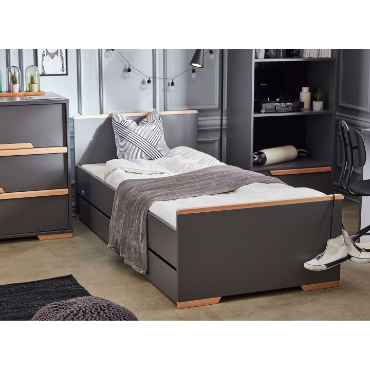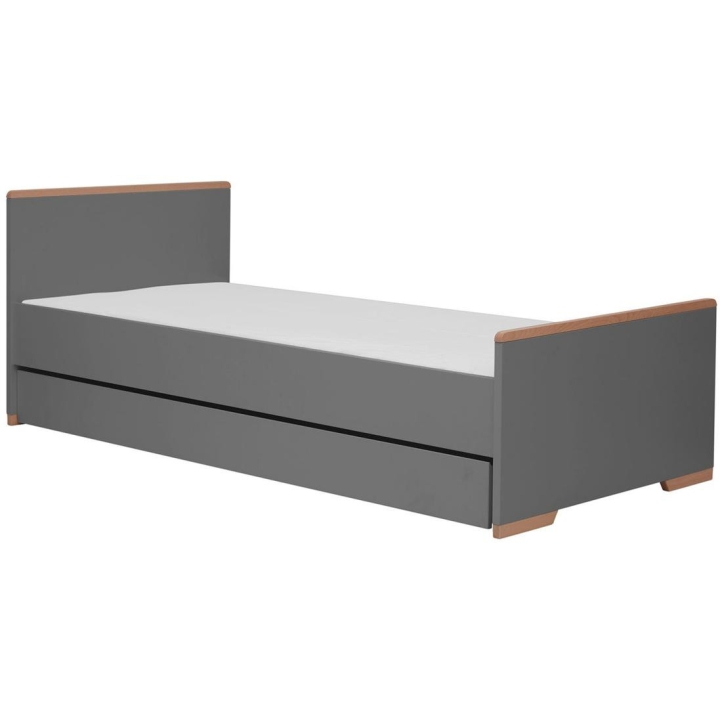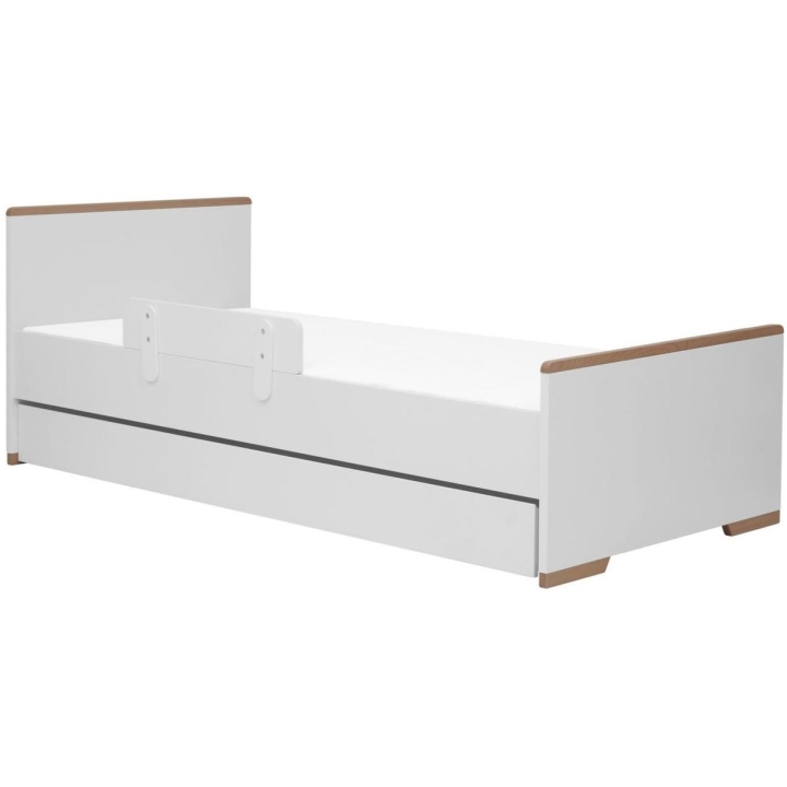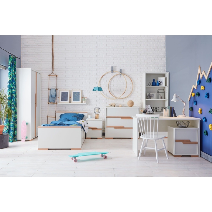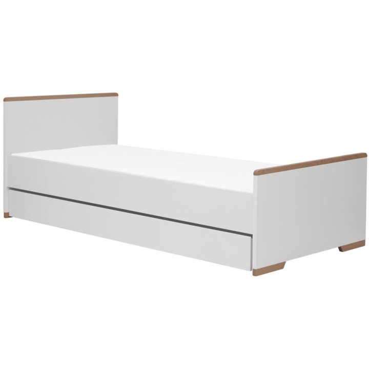 The Snap bed by manufacturer Pinio is a piece of furniture that will be an extremely important place in your child's room. Stylish and modern, it will be an ideal choice for a preschooler, a student at the beginning of their educational journey, as well as a teenager. The furniture is characterised by a solid construction made of painted MDF, laminated board (tops), beech wood elements, together with a durable pine frame. The bed is sold without a mattress, but includes the included frame. Universal in design, it fits both a boy's and a girl's room. Additionally there is an option to buy a 200x90cm drawer and a railing. The product requires self-assembly.