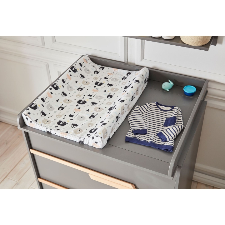 The Snap dresser changing pad is the perfect accessory to improve both your comfort and that of your baby. The overlay is compatible with the 3-drawer chest of drawers and its dimensions are: 76 cm wide, 11 cm high and 90 cm long. The price includes the frame, without the fabric insert (mattress). The changing unit is made of MDF board painted with ecological paints . In addition, assembly and disassembly of the accessory is extremely easy, making it convenient to use. The changing unit is available in the colours white and dark grey.