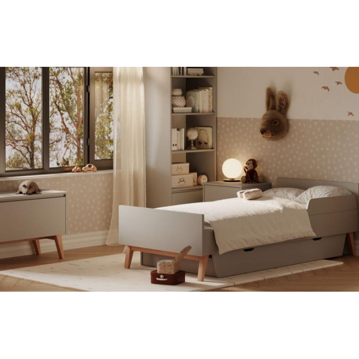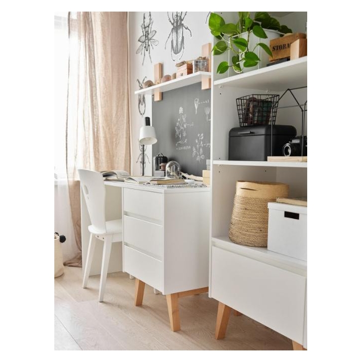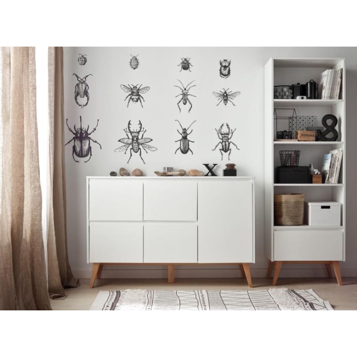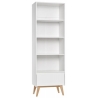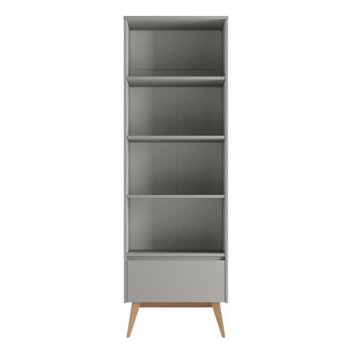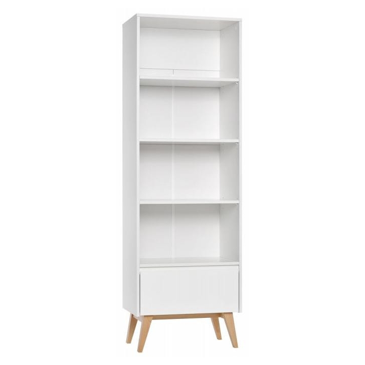 The bookcase from the Swing collection is a piece of furniture with an elegant design. Its dimensions - 65 cm wide, 200 cm high and 43 cm deep - provide plenty of storage space thanks to four shelves and a capacious drawer. The bookcase was designed with ease of assembly and convenience of use in mind, which is why the drawer runners are equipped with a brake. Its construction is made of painted MDF, laminated board (carcass, internal parts) and solid beech wood (legs), which gives the furniture elegance and durability. Care for the health of users has been confirmed by the use of certified paints. The aesthetically pleasing handleless fronts and the aforementioned beech wood legs give the furniture lightness and finesse. This elegant collection is available in two colours: white and grey.