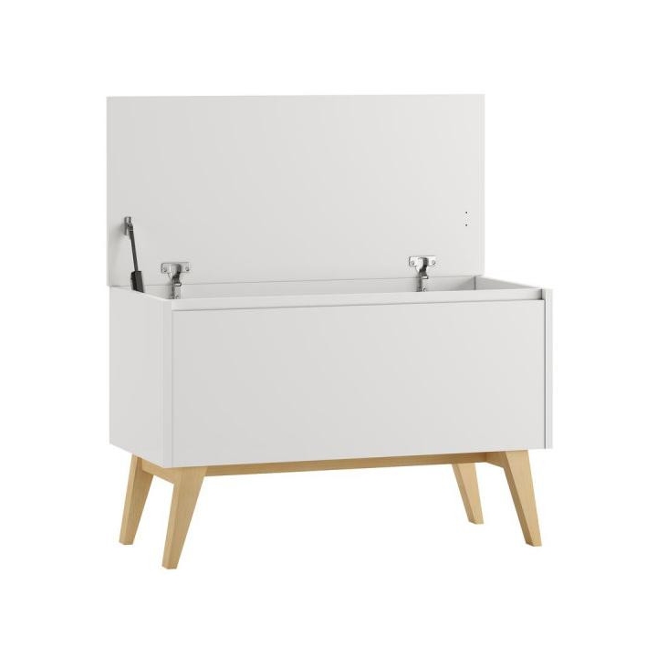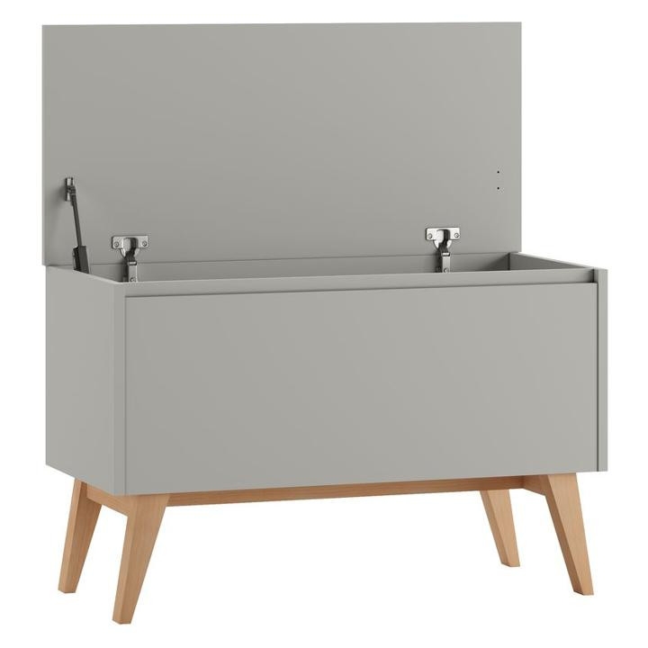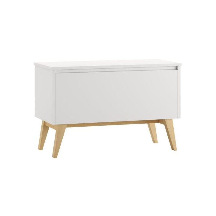 The Swing toychest is a sturdy, practical and capacious storage unit that will accommodate toys, bedding and all essentials. The furniture is made of painted MDF (fronts), solid varnished beech wood (legs) and seamless laminated board. The chest has been coated with certified and, above all, user-safe paints, complying with the EN71-2 standard. It comes in white and grey, making it universal and suitable for many types of interiors . The product is designed for self-assembly.