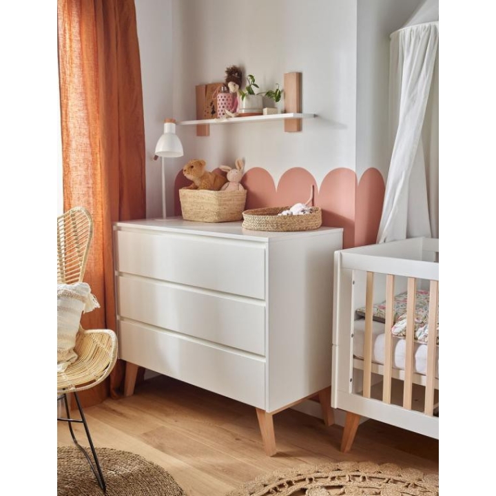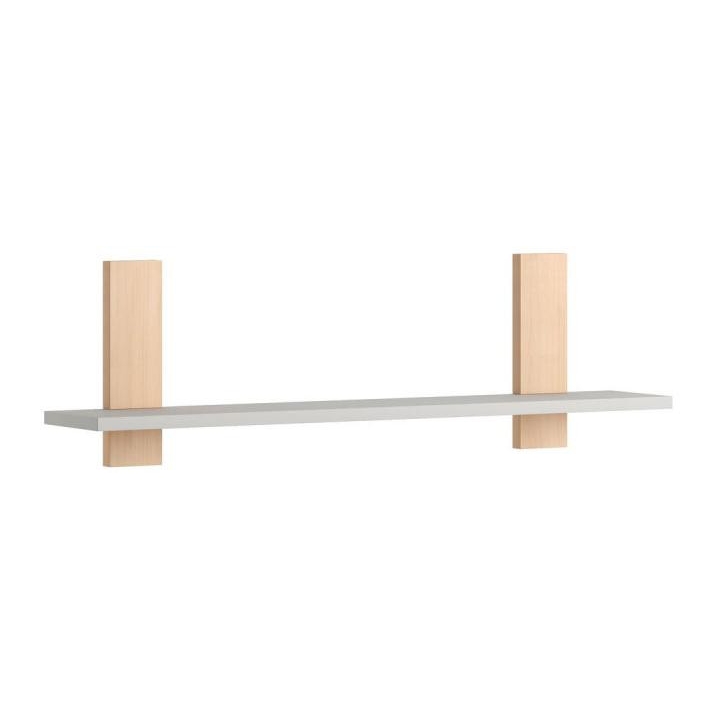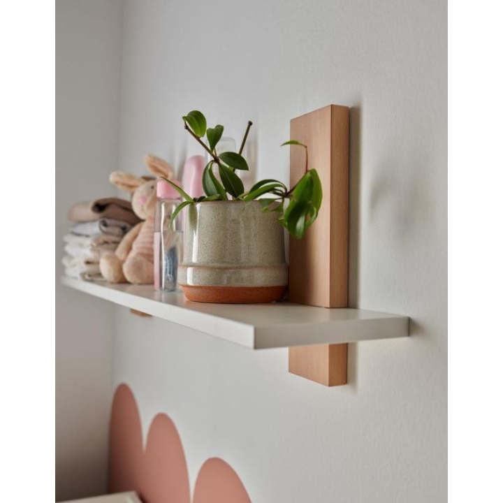 The shelf from the Swing collection is a simple, everyday solution that fits into any interior. Measuring 92 cm in length, 20 cm in height and 18 cm in depth, it will easily accommodate handy cosmetics or accessories needed for baby care at . It is also ideal as a mini library. The shelf is made of laminated board and solid beech wood (elements in the colour of wood). The product is intended for self-assembly. The shelf is available in two colours: white and grey.