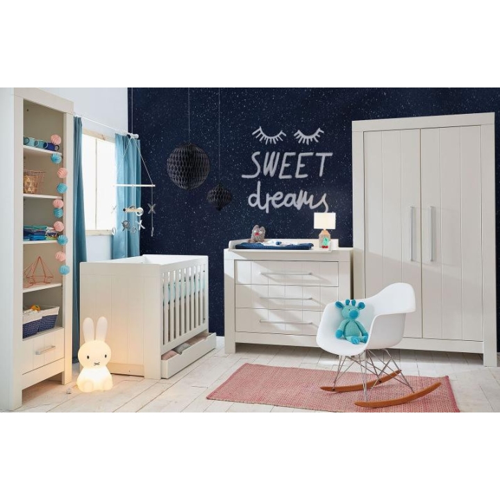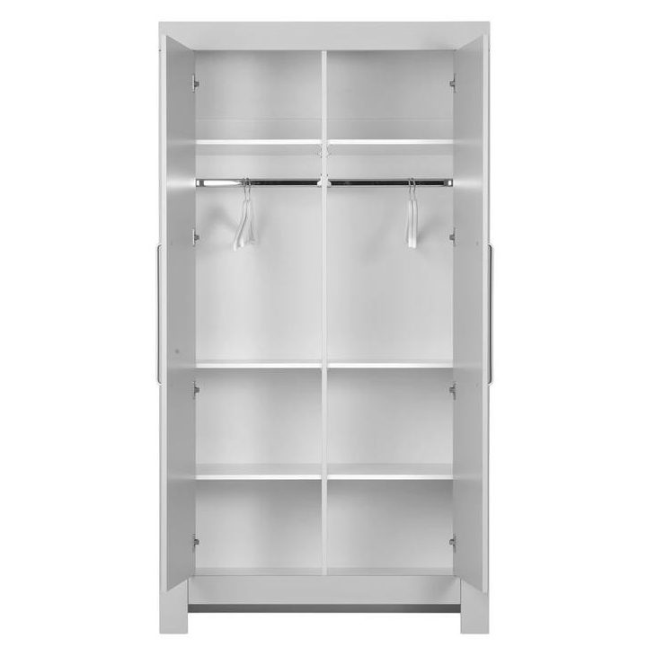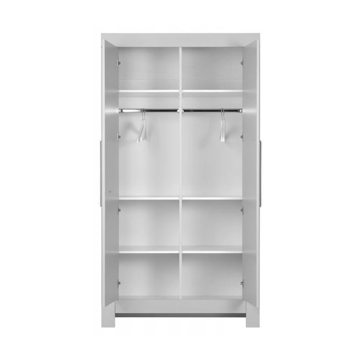 The two-door wardrobe from the Calmo collection is a piece of furniture with an interesting design equipped with an advanced silent closing system. The interior of the wardrobe, measuring 111 cm in length, 205 cm in height and 56 cm in depth, provides plenty of storage space thanks to six shelves and two rods for hanging clothes. In addition, it is possible to purchase shelves - up to a maximum of two. The wardrobe has been designed with ease of assembly in mind . The wardrobe is made of painted MDF (fronts), laminated board (body), which makes the furniture more durable. Care for the health of users has been confirmed by the use of certified paints. The Calmo wardrobe is a combination of functionality and interesting style, which is emphasised by the milled fronts that give the furniture its lightness and finesse. This elegant collection is available in two colours: white and grey.