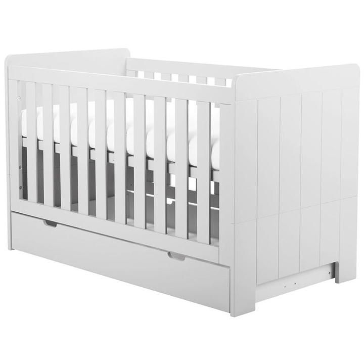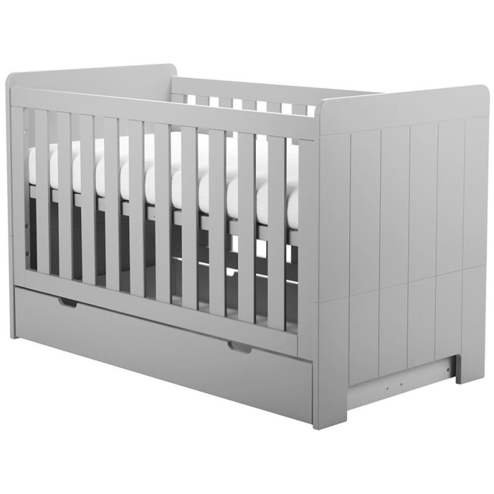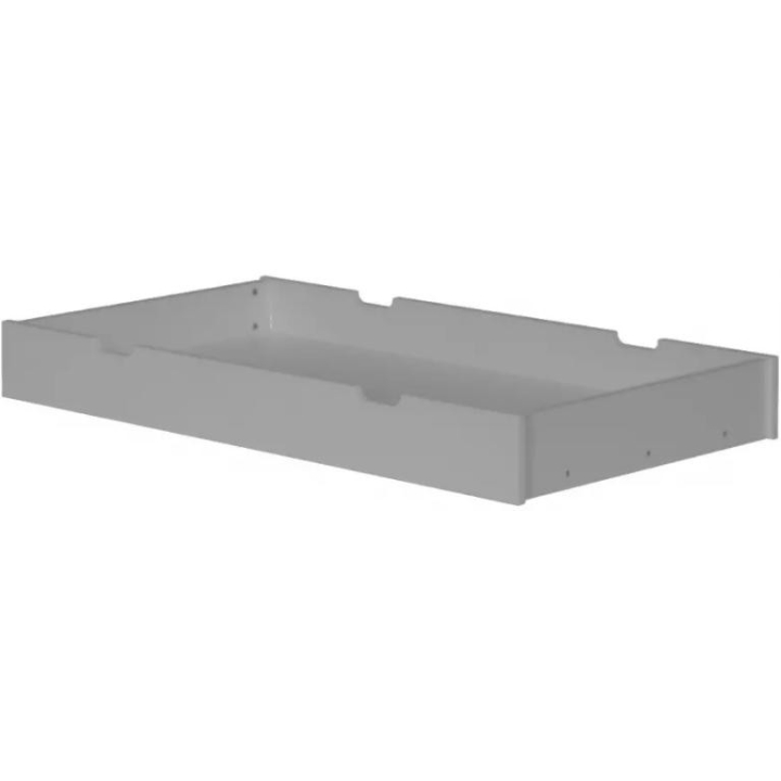 The drawer from the Calmo collection is an accessory that provides additional usability to a cot from the same collection. Its dimensions - 139 cm long, 18 cm high and 74 cm wide - provide additional storage space for bedding, toys or clothes, for example. The drawer has been designed with ease of assembly in mind, and the water-based paints used during production are eco-friendly and safe for users. The accessory is made of MDF (fronts) and furniture board (sides and bottom), making it extremely durable. The Calmo drawer is an extremely functional accessory, which is highlighted by the castors installed in it, which make its pull-out simple and quiet. This elegant collection is available in two colours: white and grey.