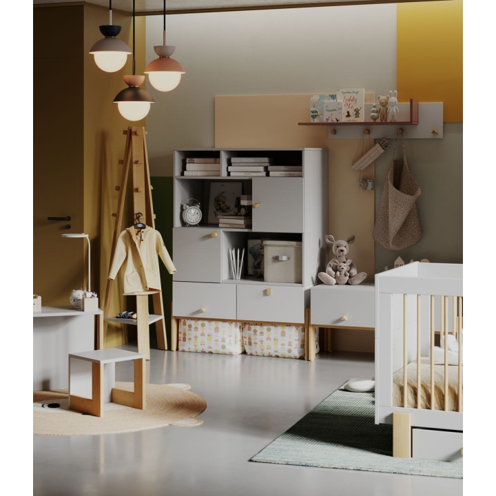 The Cube clothes rack by Pinio is the perfect addition to a child's room. The furniture is made of MDF (shoe shelf) and solid beech wood (structure). The product is available in the colour of natural beech wood, making it universal and suitable for any interior. The Cube set meets both Polish and European standards of safety, strength and durability. The clothes holders are available in natural beech wood (standard) or in a multi-coloured shade. If you choose the second option, please comment in the notes to your order. The product requires self-assembly.