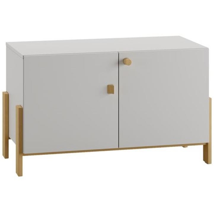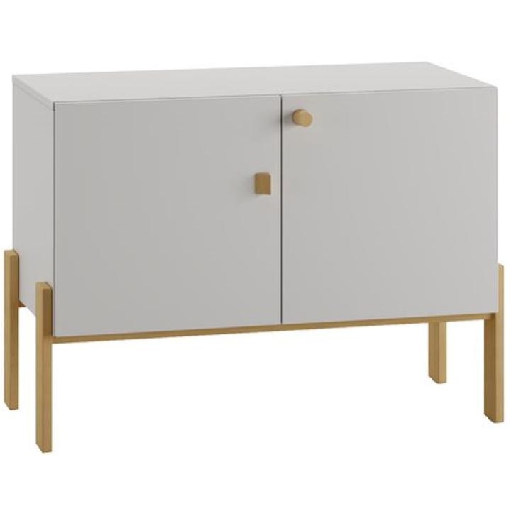 The 2-door module from the Cube collection is a piece of furniture with an interesting design. Measuring 100 cm wide, 75 cm high and 52 cm deep, the interior of the module provides plenty of storage space. The module has been designed with ease of assembly in mind and is made from laminated board. Solid beech wood legs can be added to the module to give the furniture elegance and durability. The furniture is made of boards with reduced formaldehyde content, as well as certified paints complying with the EN 71-2 standard. The module can be mounted both on top and bottom of a wardrobe, chest of drawers, bookcase or other module. In addition, it is possible to replace the beech-coloured wooden handles with coloured ones - please let us know in the comments to your order. This elegant product is available in light grey.
