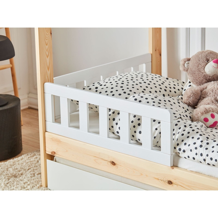 The Classic Safety Barrier for the bed from the Cottage collection with dimensions: 200 x 90 cm has been made of solid pine wood. The accessory will provide your child with additional safety while sleeping by eliminating the risk of falling out of bed. The bed rail is available in two colours: white and natural. The price includes two pieces.