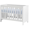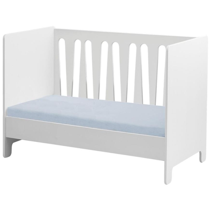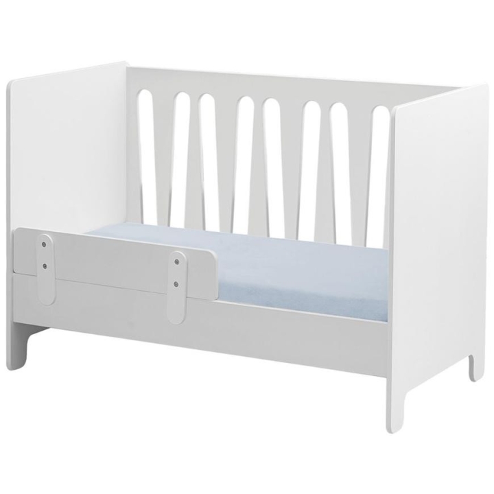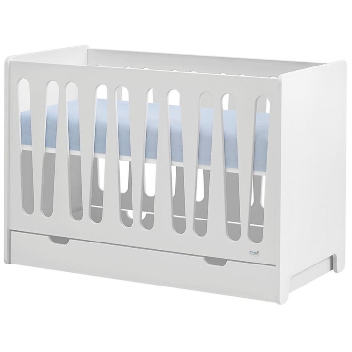 Dedicated to a mattress size of 120 x 60 cm, the elegant Moon cot is characterised by its versatility, adapting to the needs of a growing child. It has three options for mattress height adjustment, as well as the ability to remove one of the sides of the cot, allowing it to be modified as your little one grows. Made entirely from MDF, the furniture guarantees solidity and style. As an option, you can buy a safety rail, a drawer for bedding and a Pinio Sensitive mattress, perfectly matched to the structure. Taking care of safety and health, the product has been created from materials with reduced formaldehyde content. The unique design of the cot is emphasised by the details - the unique pattern of holes in the railing adds a touch of class, while the rounded corners ensure the safety of the little ones. The cot is available in white.