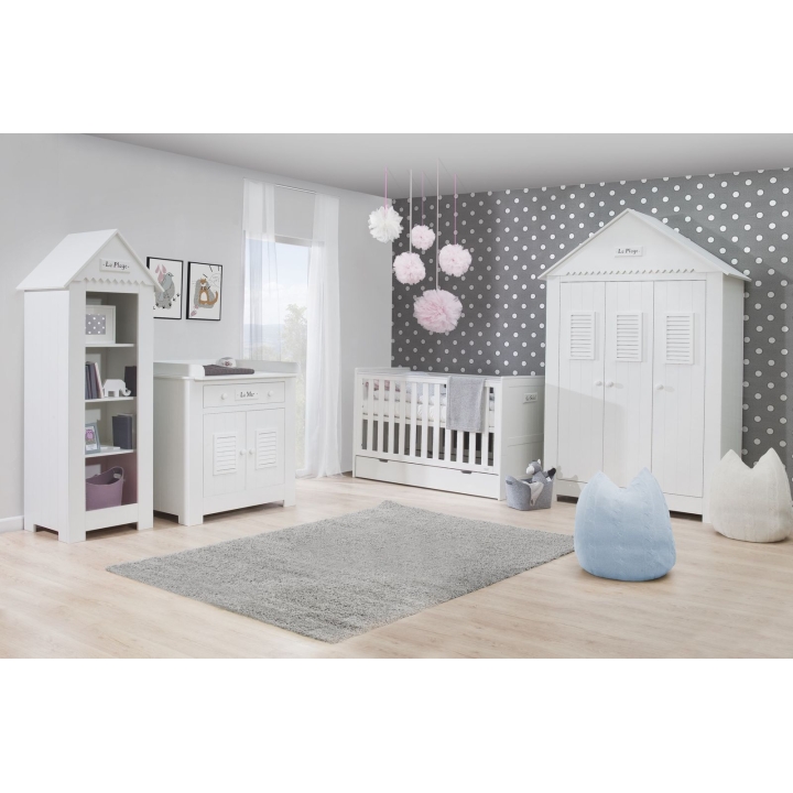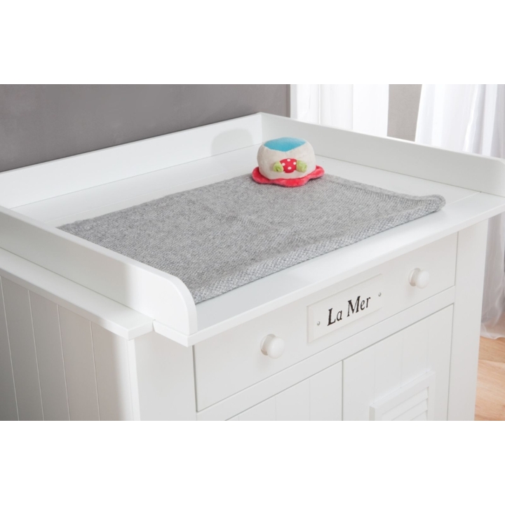 The Marsylia collection chest of drawers is a piece of furniture with a unique design equipped with an advanced silent closing system. Measuring 100 cm long, 92 cm high and 53 cm deep, the interior of the chest of drawers provides plenty of storage space thanks to two doors and a drawer. The chest of drawers has been designed with ease of assembly in mind . The chest of drawers is made of painted MDF, while the shelves and internal elements are made of laminated board. The care for the health of the users has been confirmed by the use of certified paints. The Marsylia chest of drawers is a combination of functionality and sophisticated style, highlighted by the fluted fronts that give the piece of furniture a more premium look. This elegant chest of drawers is available in white. There is an option to purchase a changing pad.