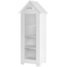The small bookcase from the Marseille collection is a piece of furniture with an unusual design. Its dimensions - 72 cm wide, 183 cm high and 55 cm deep - provide plenty of storage space thanks to its four shelves. The bookcase has been designed with ease of assembly in mind . The furniture is made of painted MDF and the internal parts are made of laminate board, giving the structure durability. Care for the health of users has been confirmed by the use of certified paints. The Marseille bookcase is unique in that it features an interesting La Plage (French for beach) decor, as well as a top rim in the shape of a sloping roof, making it similar to a French beach house. This trendy collection is available in white.