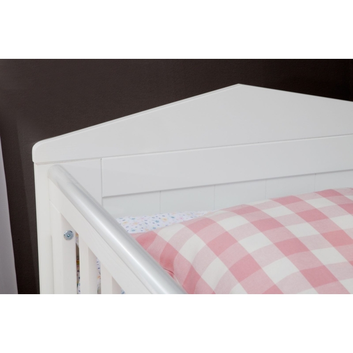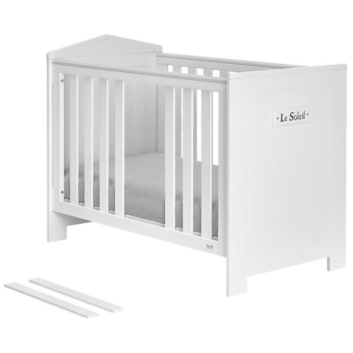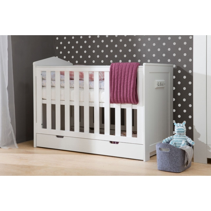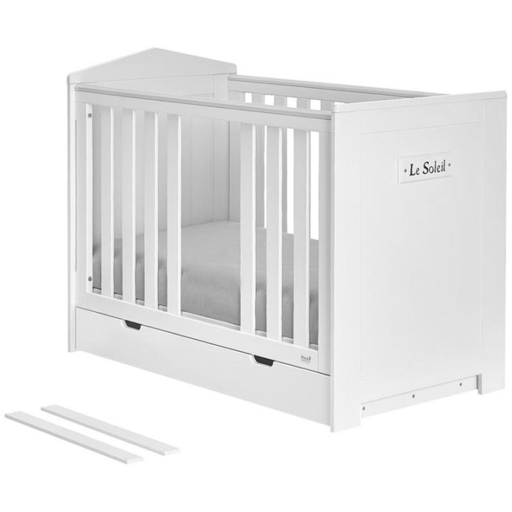 Dedicated to a mattress size of 120 x 60 cm,the Marsylia cot is characterised by its versatility, adapting to the needs of a growing child. It has three mattress height adjustment options and two removable rungs for easy access to the mattress. In addition, the sides with rungs are finished with a plastic cap to prevent your child from biting. Made from solid pine (sides and base) , and MDF (tops), the cot guarantees solidity and style. As an option, you can purchase a decor with your own name, a bedding drawer and a Pinio Sensitive mattress, perfectly matched to the design. Taking care of safety and health, the product is painted with ecological water paints which do not cause allergies in children. The unique design of the cot is highlighted by a detail - roundedcorners, which ensure the safety of the little ones. The cot is available in white.