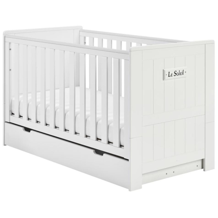 The drawer from the Marsylia collection is an accessory that provides additional usability to a cot from the same collection. Its dimensions - 139 cm long, 18 cm high and 74 cm wide - provide additional storage space for bedding, blankets or clothes, for example. The drawer has been designed with ease of assembly in mind, and the water-based paints used during production are eco-friendly and safe for users. The accessory is made of MDF (fronts) and furniture board (sides and bottom), making it extremely durable. The Marsylia drawer is an extremely functional accessory, which is highlighted by the castors installed in it, which make its pull-out simple and quiet. This elegant collection is available in white.