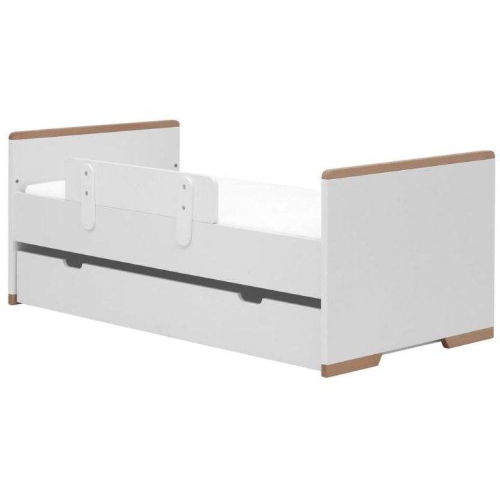 Snap safety barrier for beds from the same collection with dimensions: 140x70, 200x90 and 200x120. The furniture slides onto the bed frame, but can be additionally mounted with screws. The railing is made of MDF. The accessory will provide your child with extra safety while sleeping by eliminating the risk of falling out of bed. Available in white and dark grey.