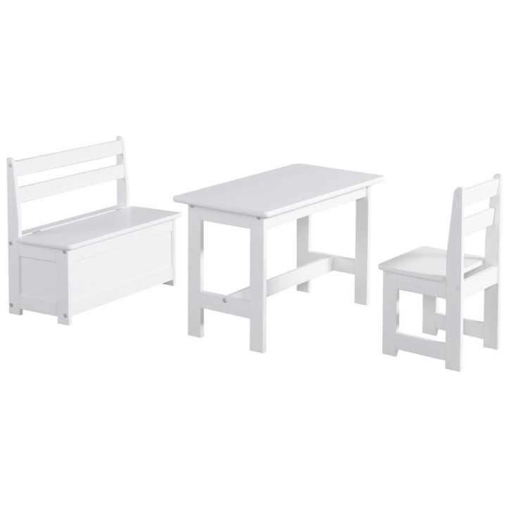 The Toddler Chair is the perfect accessory to delight your child. The chair is compatible with other products from the Toddler collection and its dimensions are: 31 cm wide, 29 cm long and 57 cm high. The piece of furniture has been made from natural, solid pine wood, making it durable. The accessory has been painted white using water-based paints, which are environmentally friendly and safe for users. The product is for self-assembly.