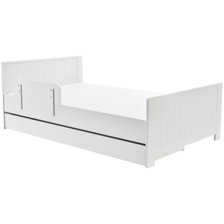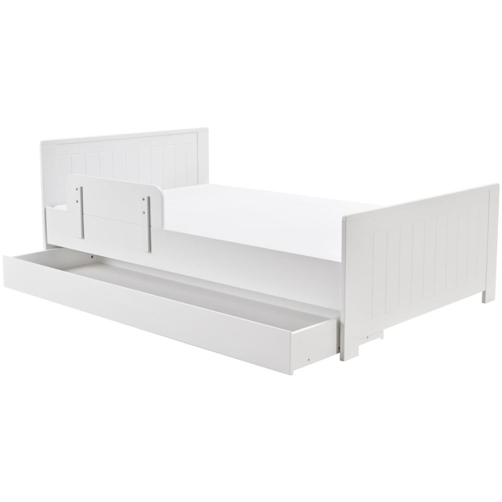 The Blanco 140x200 bed from the Pinio manufacturer is a piece of furniture that will be an extremely important place in your child's room. Stylish and modern, it will be an ideal choice for a preschooler, a student at the beginning of their educational journey, as well as a teenager. The piece of furniture is characterised by its solid construction made of painted MDF along with a sturdy wooden frame. The bed is sold without a mattress, but includes the included frame. A versatile design, it suits both a boy's and a girl's room. In addition, there is the option to purchase a drawer in the dimensions 200x140 or 200x120 and a railing. The drawer is extremely roomy and can be the perfect place to store bedding. Additionally, you can include a decor from a specific collection - in this case from the Marseille Le Soleil (French for sun) collection. The product requires self-assembly.