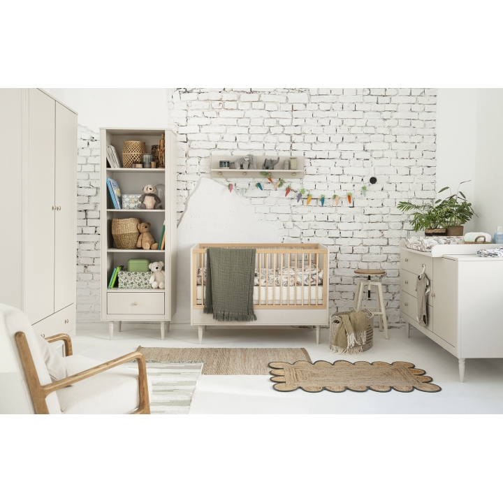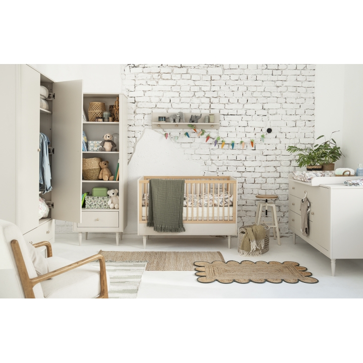 The product is made in accordance with European standard EN-716 and all the boards used have a reduced formaldehyde content (standard E05). The cot with height-adjustable mattress, removable rungs and the option to convert it into a couch is a versatile piece of furniture for your child's room. It is part of the Petite collection and goes well with other items in the series, such as a wardrobe or a bookcase.