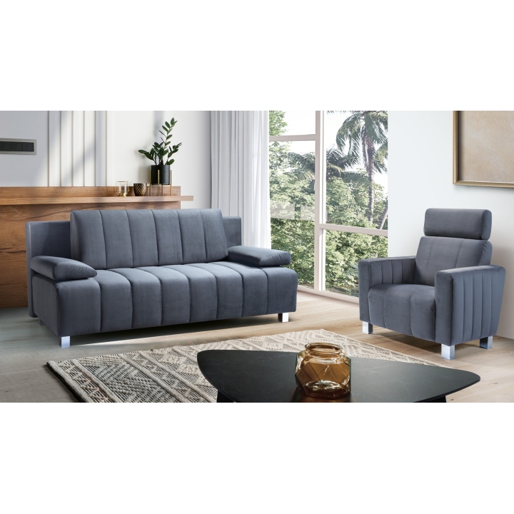 The simple body of the sofa gives you the opportunity to place it against the wall or in the central part of the room. The model is available in various fabrics and colors, so you can match it to the interior layout and your own visual preferences. Thanks to its size and large sleeping area, it works well in one- or two-bedroom apartments, as well as in guest rooms, where it serves as the main sleeping place.