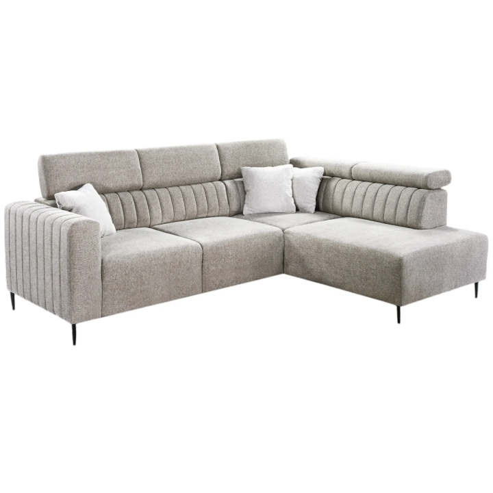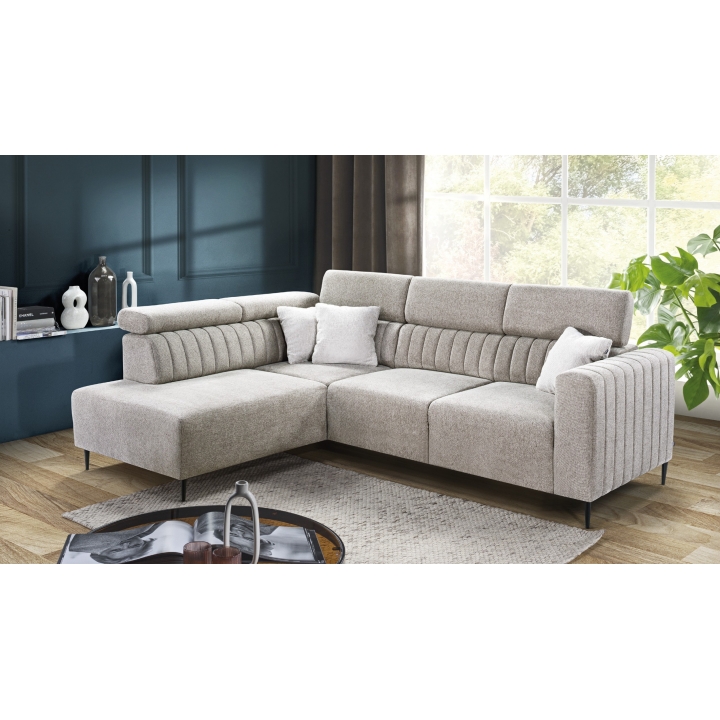 The Kobe corner sofa is a modern piece of furniture that brings comfort, elegance and everyday functionality to the living room. Its dimensions allow you to create a comfortable space for meetings with the family, relaxing after work or watching movies together. Thanks to the adjustable headrests, the height of the corner sofa can be adjusted to suit your needs, providing ideal support for your neck and back - from an upright position to full relaxation in a semi-reclining position.