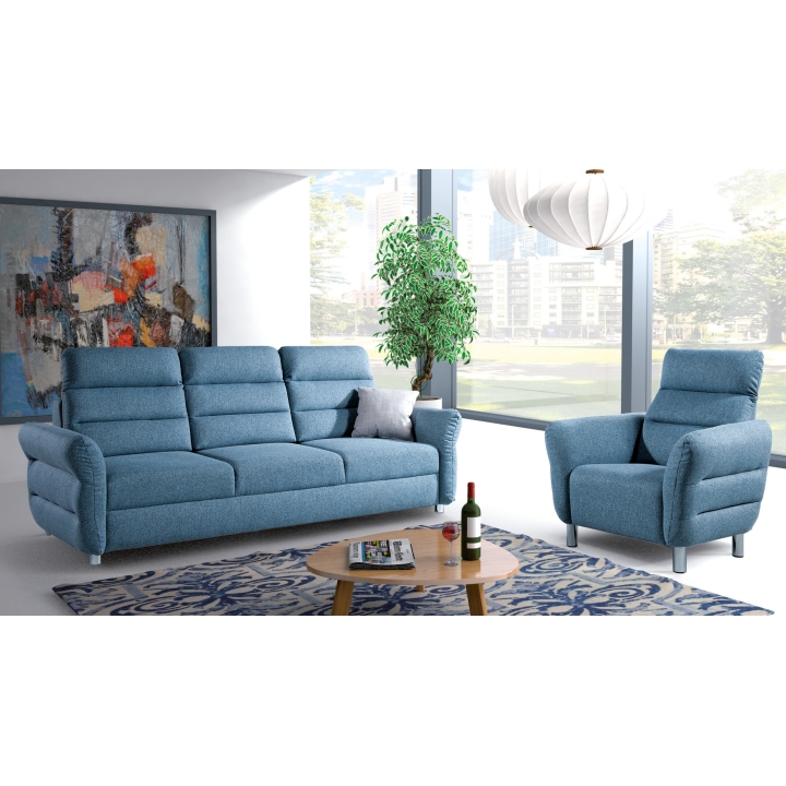 The basic version of the Nitra sofa does not have a bedding container, but it is possible to order one as an additional option. The furniture stands on legs, which makes it easy to clean underneath and allows you to use robot vacuum cleaners.
