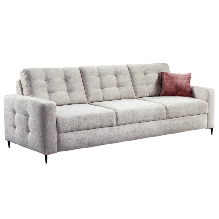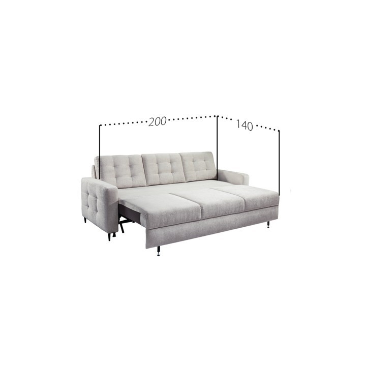 The structure of the sofa is based on corrugated and bonell springs, which guarantees springiness, stability and durability of use for years. Such a solution allows you to maintain the comfort of sitting and sleeping even with daily use. When unfolded, Ales offers a sleeping area of 200×140 cm, enough space for two people. The assisted unfolding mechanism makes turning the sofa into a bed easy and fast, without the need to use force.