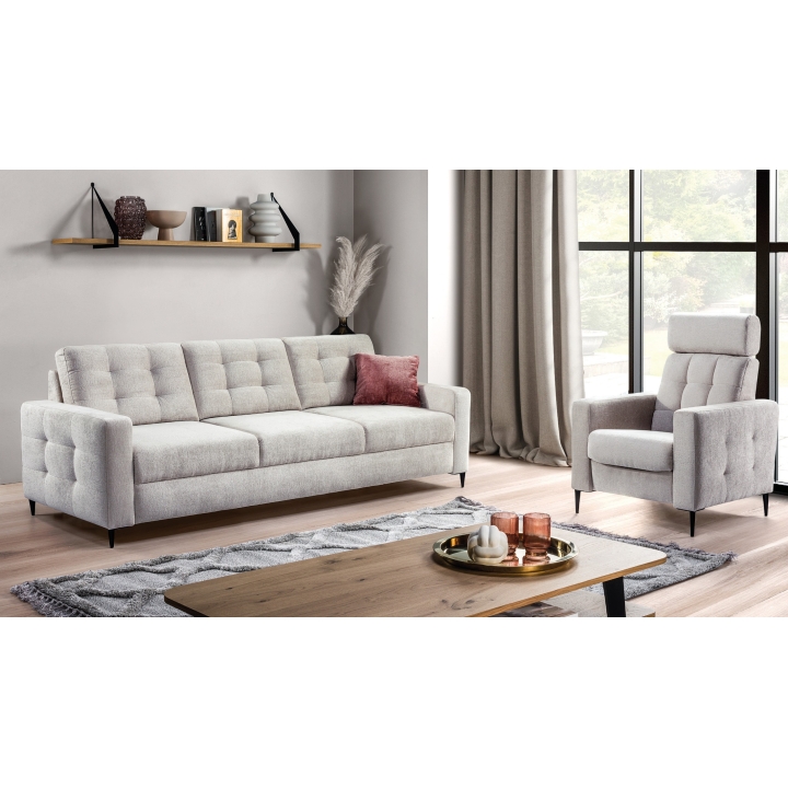 The Ales sofa is a proposal for people who are looking for a compact yet versatile piece of furniture - ideal for everyday rest and occasional sleeping. With a wide range of fabrics and upholstery colors, you can match it to any interior, from classic to modern.