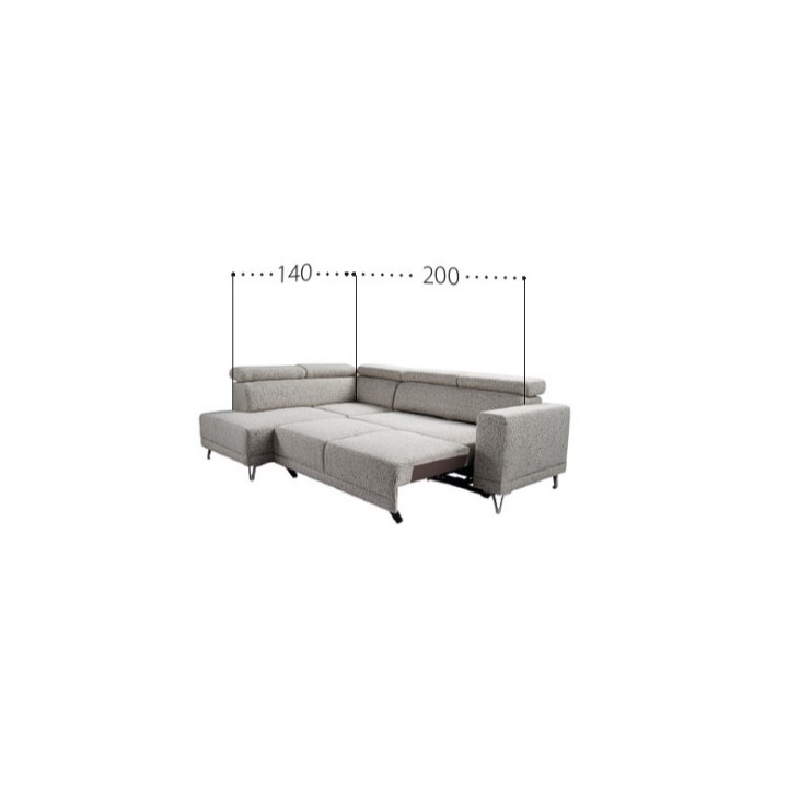 In the evening, the Rewa easily transforms into a comfortable 200×140 cm bed. Thanks to the assisted unfolding system, unfolding the corner is quick, light and hassle-free, which you will especially appreciate after a long day. An additional advantage is the bedding container, where you can store blankets, pillows or quilts, gaining more space in the closet and keeping your living room tidy. Moreover, it is possible to order a model with an additional container in the armrest (openable, 24 cm wide), which further increases the functionality of the furniture.
