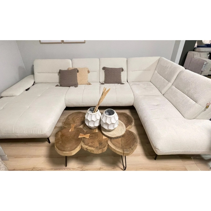 The MP-IN 22064 corner sofa is a trendy piece of furniture that will suit any type of interior. Its beige upholstery matches perfectly with the high black legs. The unique shape of the piece of furniture - in the shape of the letter "U" - makes the corner sofa extremely comfortable (the furniture has a seat depth adjustment function) and is a good place for meetings. The biggest comfort lovers will be satisfied by the fact that the recliner can be electrically adjusted, so you can take a comfortable nap on it. Additional information on the furniture is available from our advisors, please do not hesitate to contact us.