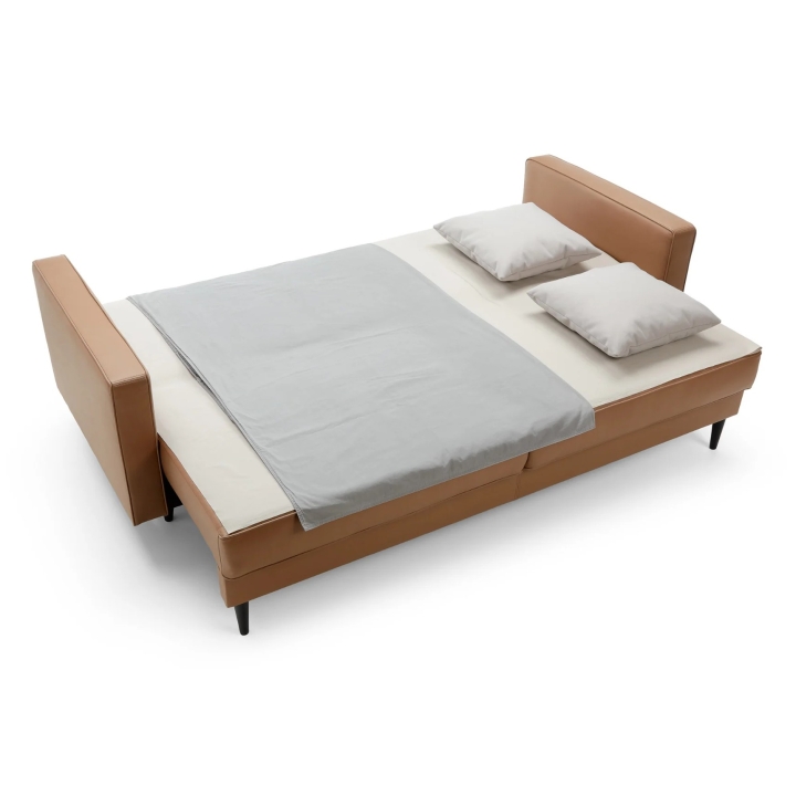 The sofa has been fitted with corrugated springs profiled in the seat and backrest, ensuring high quality rest and excellent support for the body both while sitting and sleeping. The built-in DL type unfolding mechanism makes it easy to transform the sofa into a bed with a sleeping surface of 200x140 cm, and the bedding container allows for convenient storage of an extra duvet or pillows.