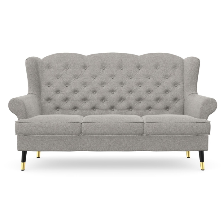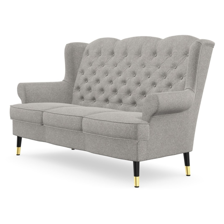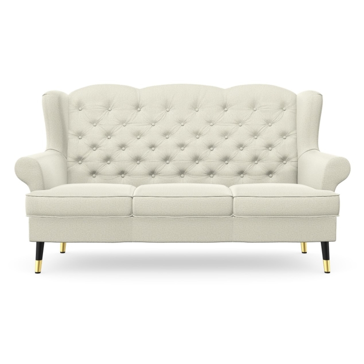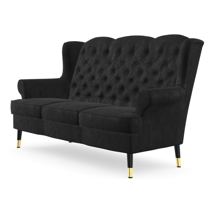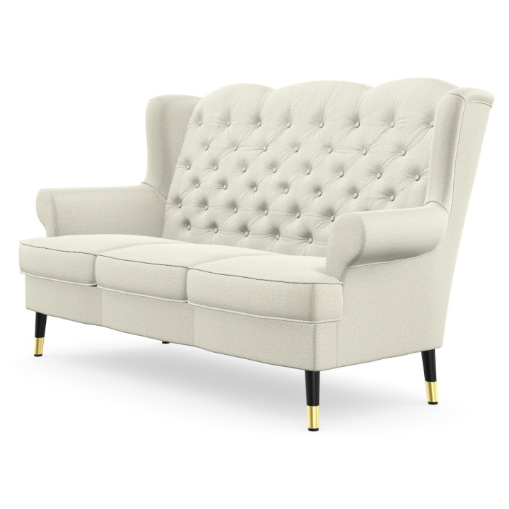 The Venice model does not have a sleeping function, but makes up for it with stylish looks and comfort of use. The use of profiled corrugated spring and 30 kg/m³ PU foam means that the seat and backrest adapt to the shape of the body and guarantee everyday comfort. Attention is drawn to the quilting on the backrest and seat and the stylish armrests, which are inspired by classic earflaps. The whole is complemented by high black wooden legs, 20 cm high, finished with a gold accent, which gives the sofa a light and refined character.