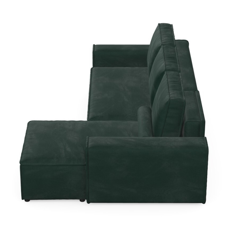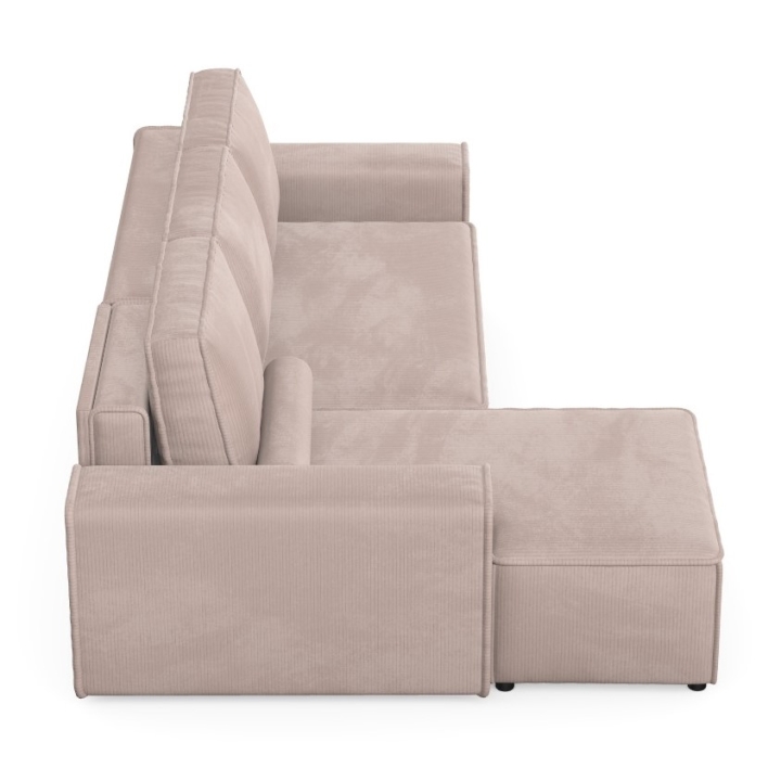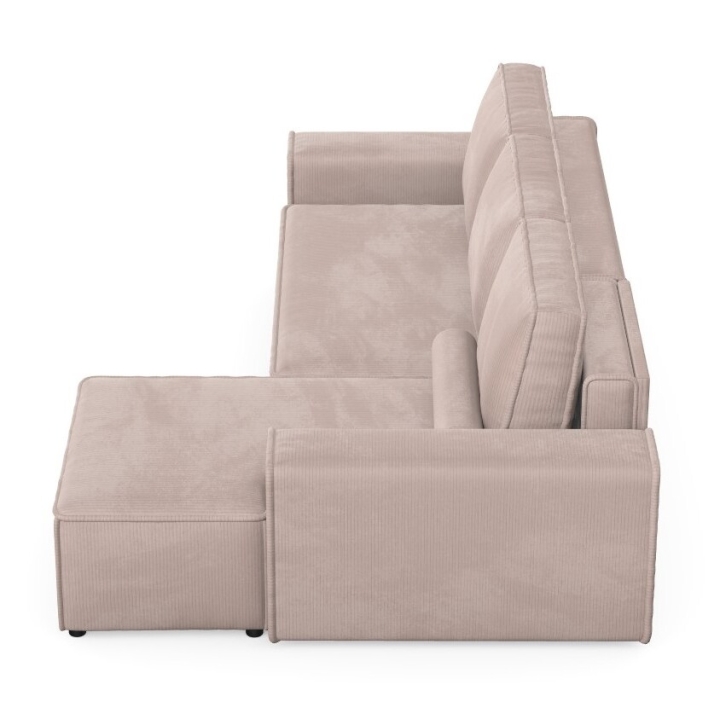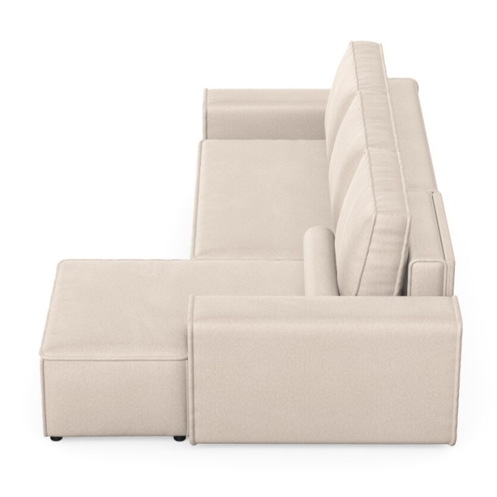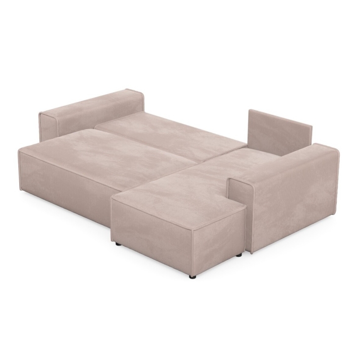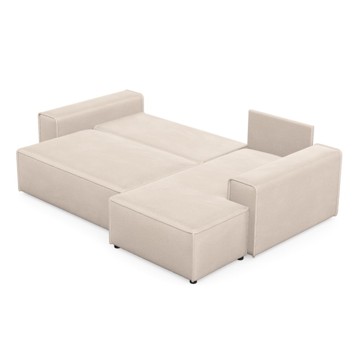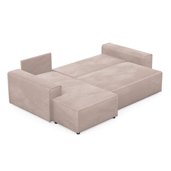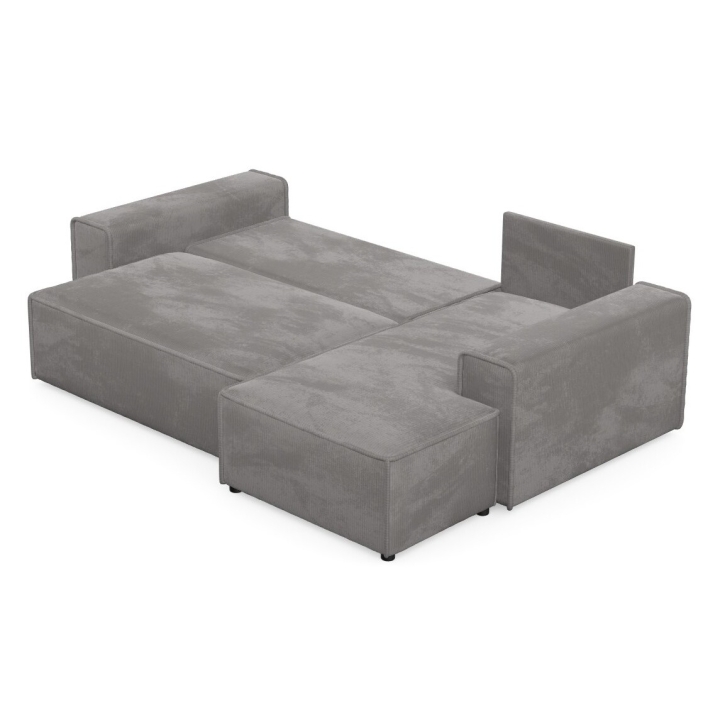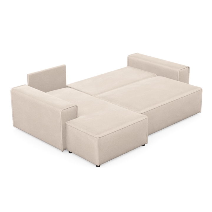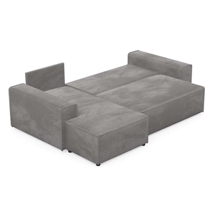 The structure of the corner sofa includes a bedding container, which makes it easier to keep the living space tidy. This subtle but very useful solution makes it possible to hide bedroom textiles while saving space in other parts of the home. The presence of the storage compartment increases the utility value of the furniture without compromising its proportions.