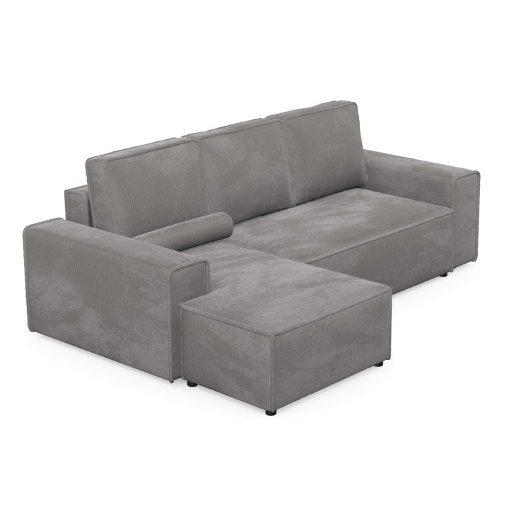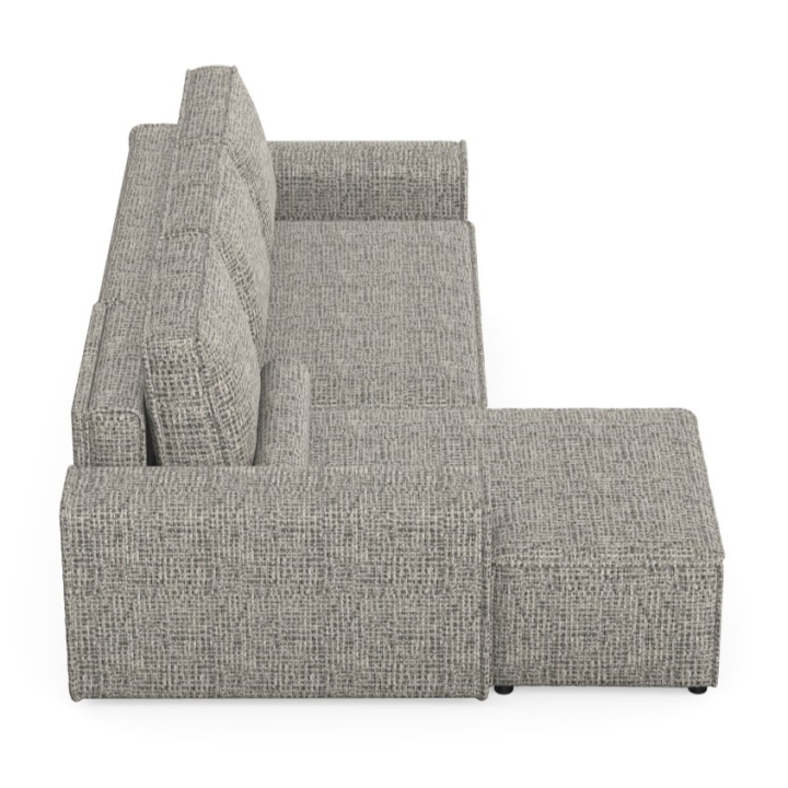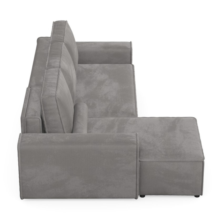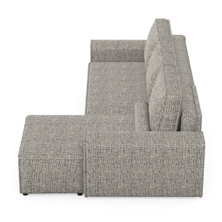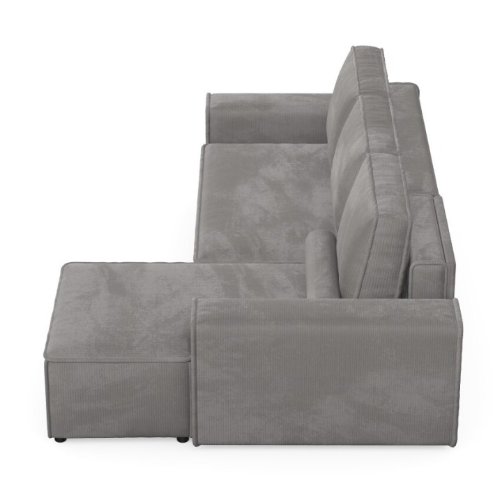 The total width of the corner sofa is 255 cm, the height is 95 cm and the depth is 110 cm, with the longer side reaching 170 cm. The armrest height of 58 cm provides support in a seated position without putting too much strain on the arms. The filling of high elastic foam and profiled corrugated spring, present in both the seat and the backrest, is responsible for the comfort of use regardless of the time of day.
