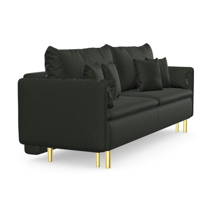 TheAsti Gold sofa by Pushman is a three-seater piece of furniture with a proportional design that fits well with the guidelines of modern interiors. It is 215 cm wide, 94 cm high and 96 cm deep, making it suitable for both larger and more intimate spaces. The shapely shape of the furniture is conducive to free arrangement without overpowering the room.