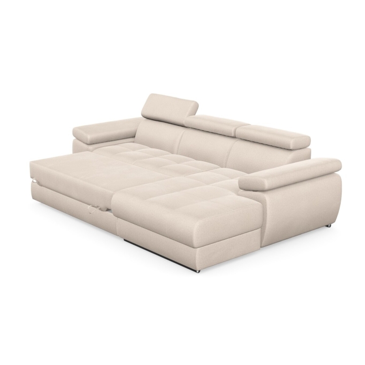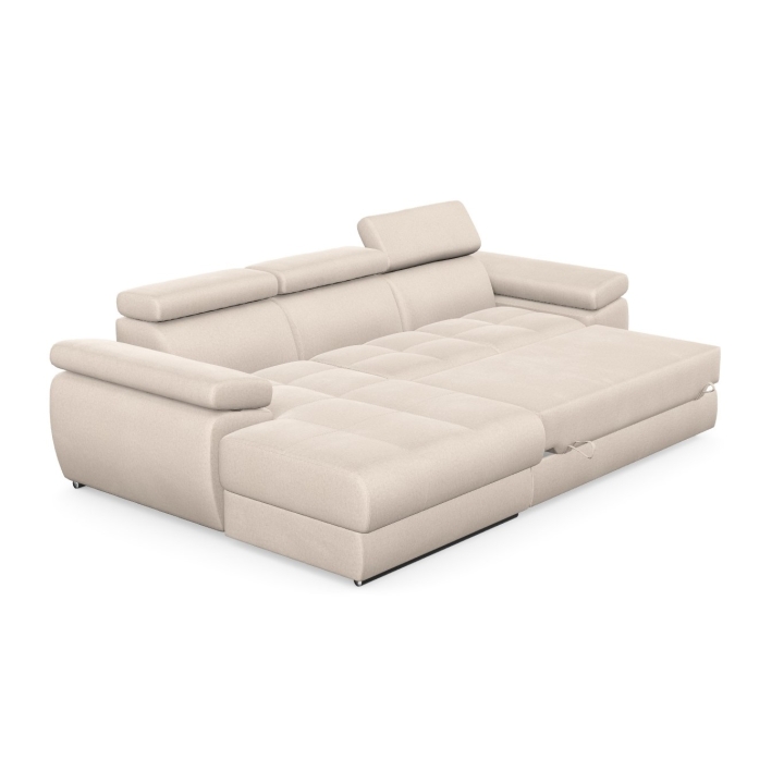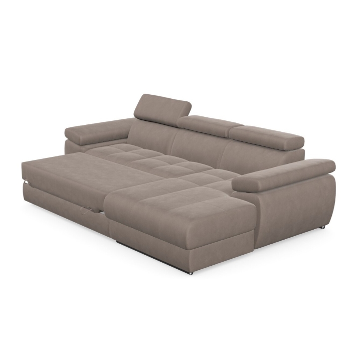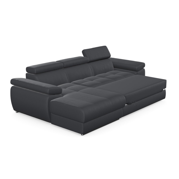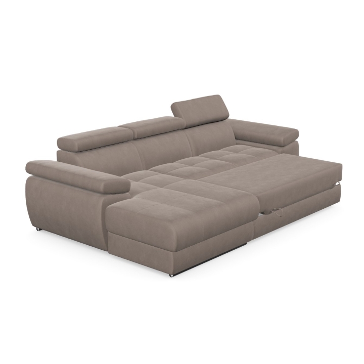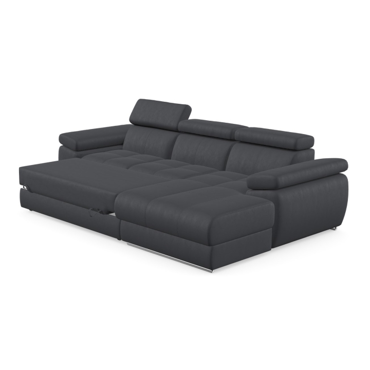 The structure of the furniture hides a spacious bedding container, which allows you to store spare duvets, pillows or less frequently used items. This way of organising the space allows you to keep your living room tidy while maintaining easy access to the things you have stowed away. The combination of the storage compartment and the sleeping function makes the Lizbona I corner sofa the perfect solution for flats where every element needs to be carefully considered.