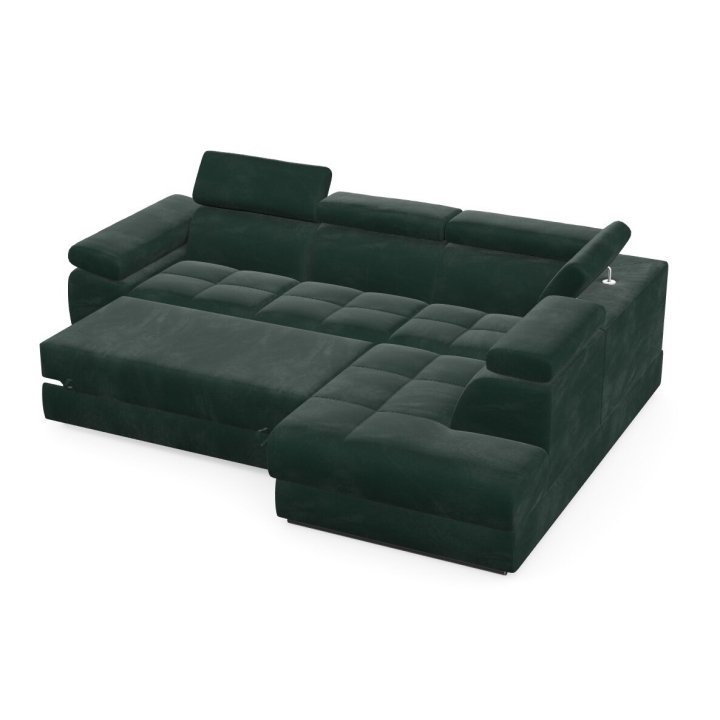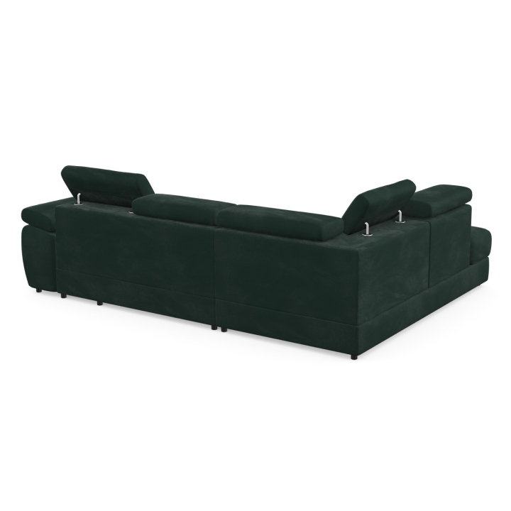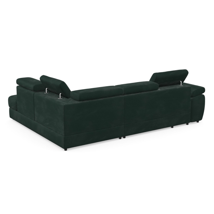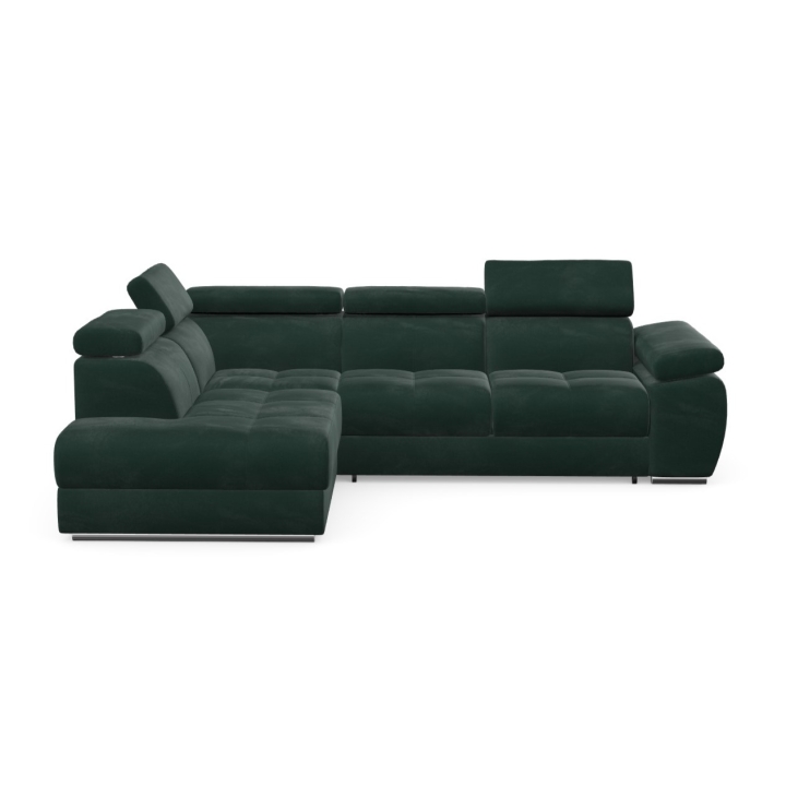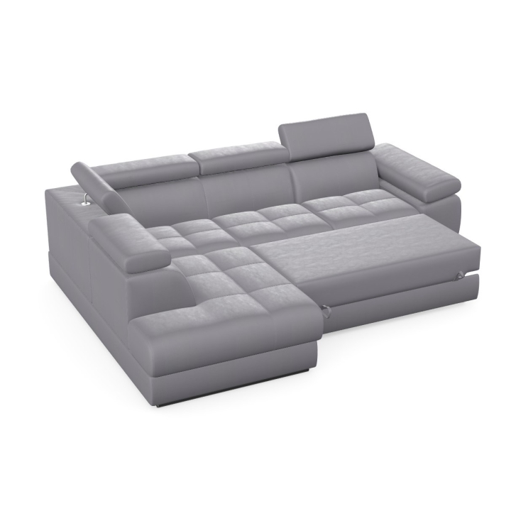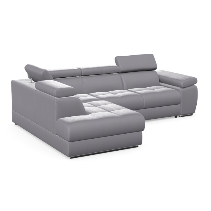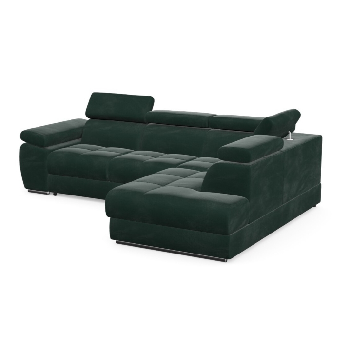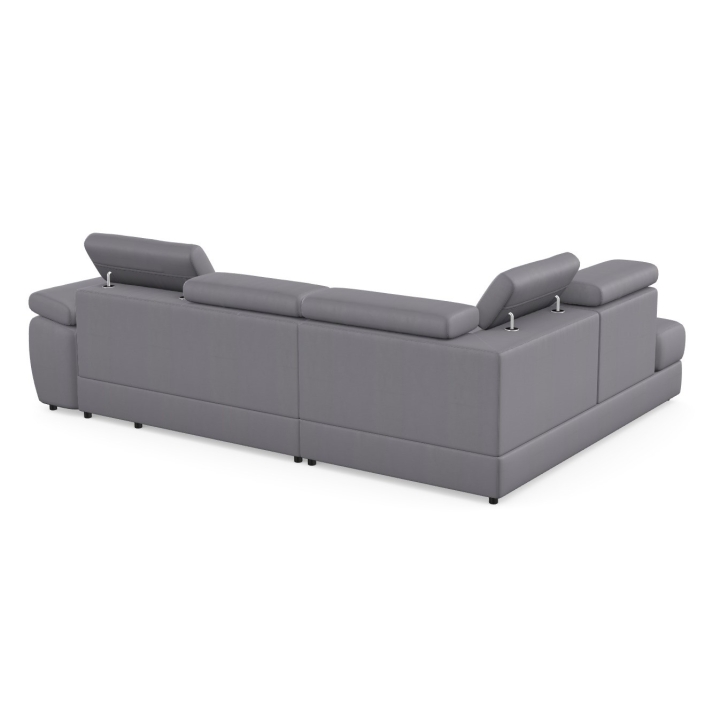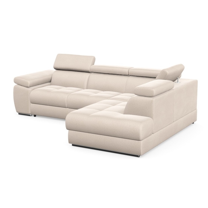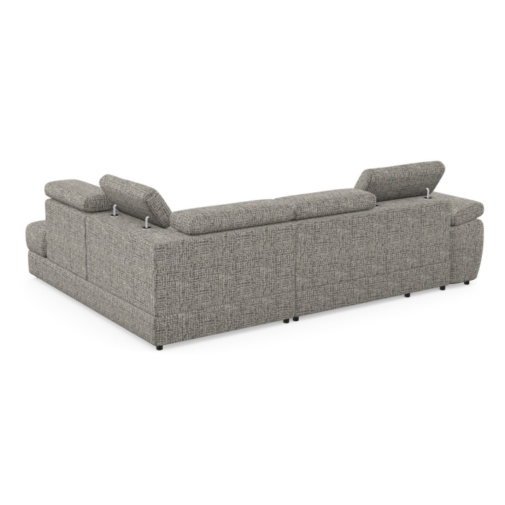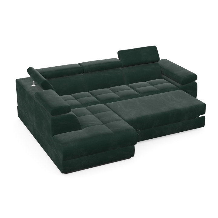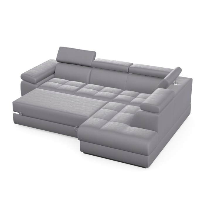 Adjustable headrests and armrests allow the Lizbona II corner sofa to be tailored to individual needs, offering additional support for the head and spine during longer rests or movie screenings. The dolphin-type sleeping function allows you to quickly create a 200x130 cm area - simply slide the lower drawer out from under the seat and lift the hidden mattress to create a level sleeping space. This solution is perfect for everyday use and for guests.