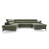 In terms of comfort, the corner sofa offers several solutions that enhance the pleasure of daily use of the furniture. Adjustable headrests and movable armrests allow for individual adjustment of the lounge area, which works well for longer relaxation or for watching a film in the evening. The seat depth reaches 58 cm, with a height of 47 cm and a usable width of 200 cm, which ensures comfort even in a semi-reclined position.