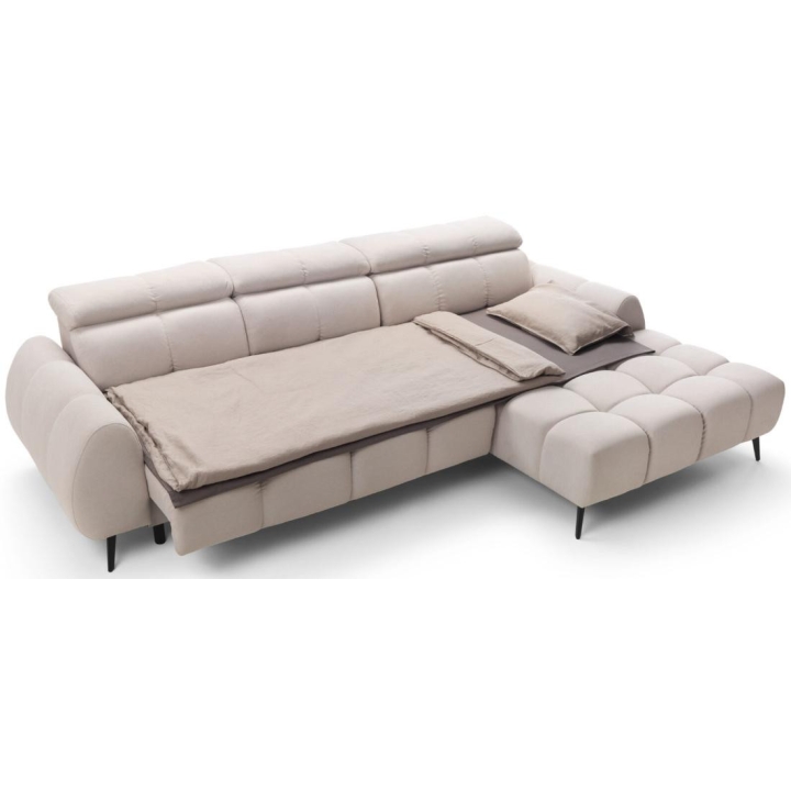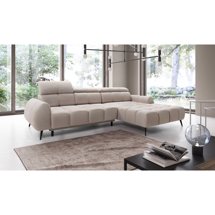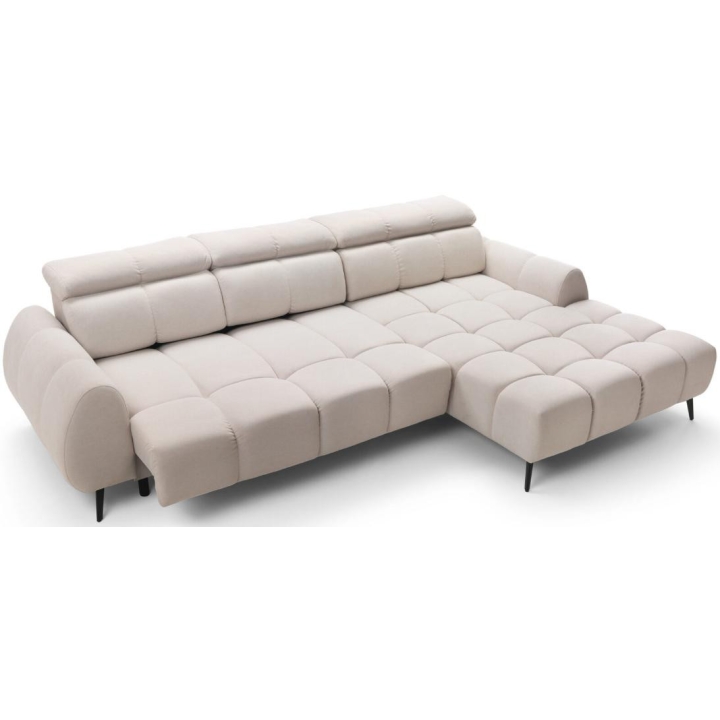 Do you want to give your living room a modern yet elegant character? The Piano corner sofa by Puszman is a proposal created just for you. Its simplicity combined with delicate details makes it a piece of furniture with a unique character. One of the most innovative solutions is the electrically extendable seat, which adjusts to the user's individual needs, ensuring maximum comfort while relaxing. The quilted seat and slim black legs add to the furniture's sophisticated style. Advanced features, such as adjustable headrests and a practical bedding container, make Piano not only beautiful, but also extremely functional. It is a corner sofa that will meet the expectations of even the most demanding lovers of design and comfort. Give your interior a new dimension with Piano corner sofa.