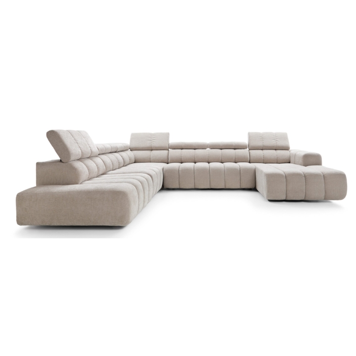 The design is based on carefully considered ergonomics - the backrests have been contoured to support the user's silhouette during everyday relaxation. The adjustable headrests make it possible to precisely adjust the height of the support, which is particularly important when sitting for longer periods or relaxing with a book. Subtle details, such as vertical stitching, add lightness and a modern character to the composition.