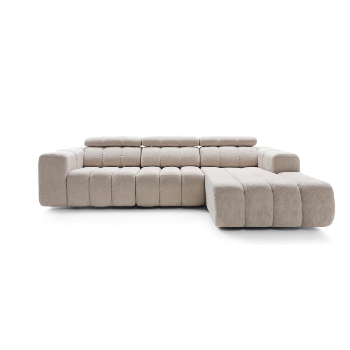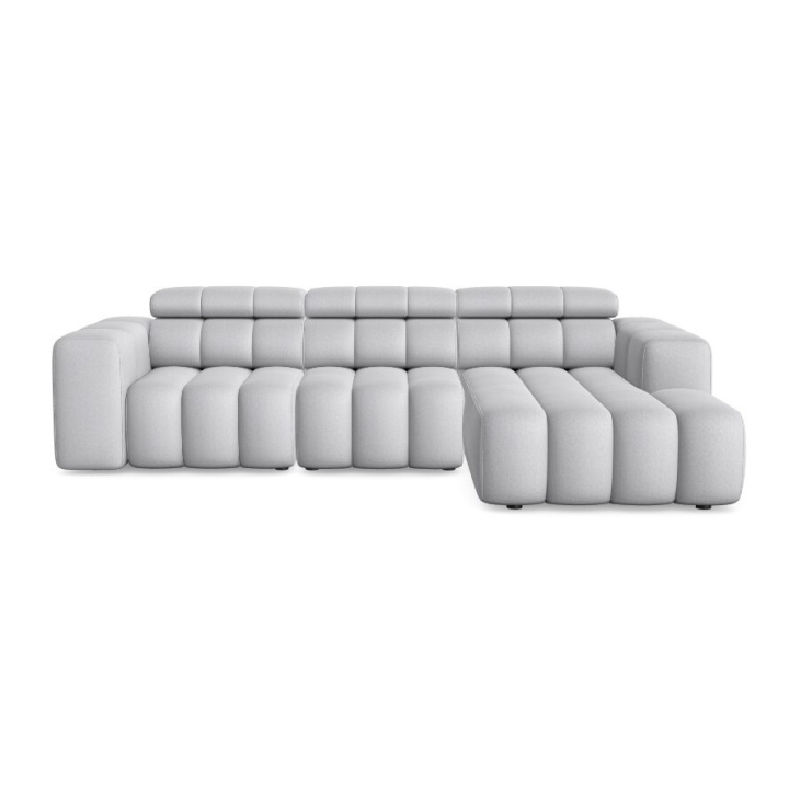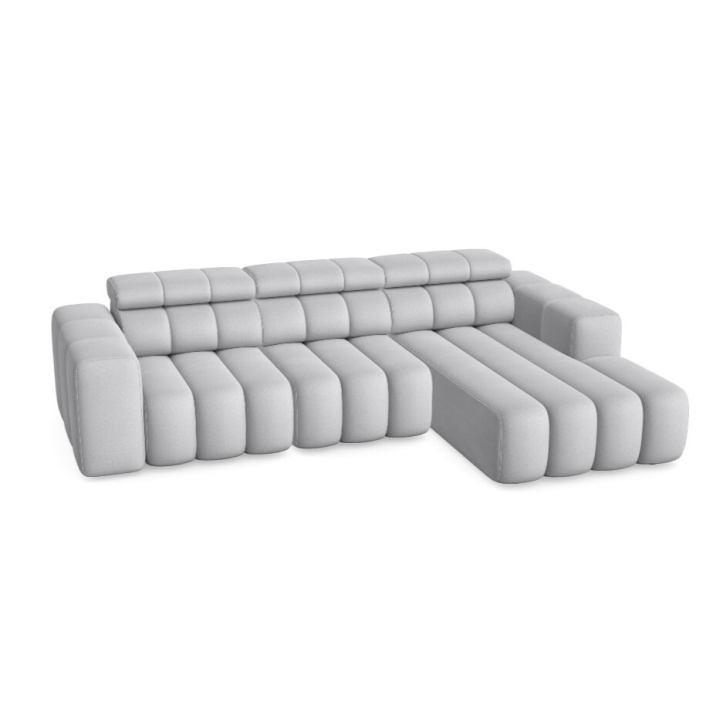The corner sofa has a total width of 288 cm, a depth of 188 cm and a height of 78 cm, which increases to 100 cm when the headrests are raised. The seat is 225 cm wide, 42 cm high and 64 cm deep to the backrest, providing freedom to relax in both sitting and semi-reclining positions. Such proportions make it possible to incorporate the furniture into various room layouts, regardless of the size of the room.
