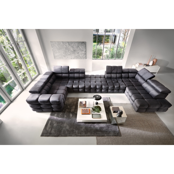 The 104x111x45 cm Buffalo Pushman pouffe is an extended upholstered unit that complements the Buffalo lounge collection. Its geometric form has been enriched with decorative quilting, which gives the whole an aesthetic and distinctive character. The wide seat and neutral shape allow it to be used both as an independent piece of furniture and as an extension to a corner sofa or a sofa from the same collection.