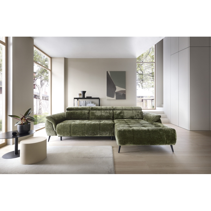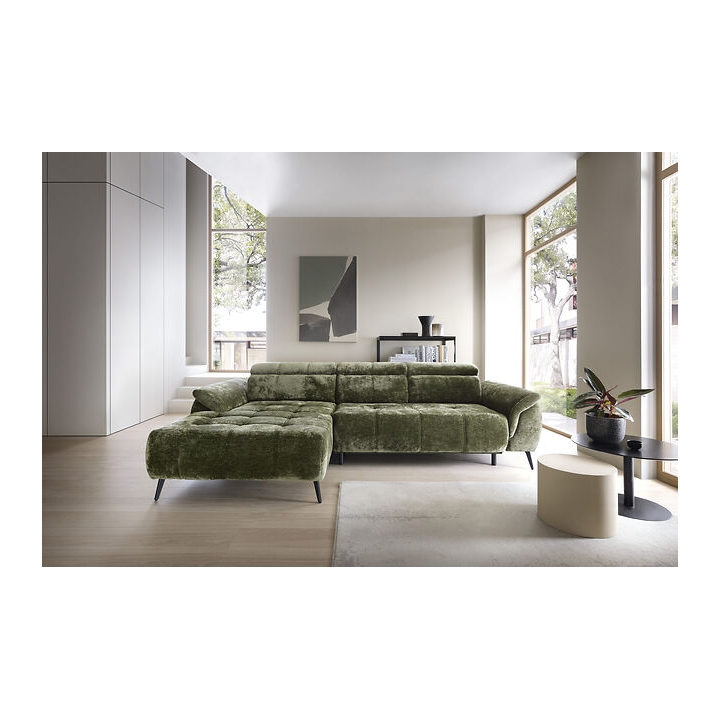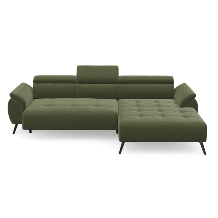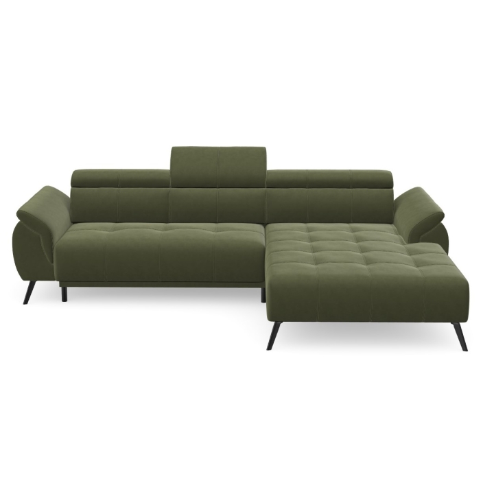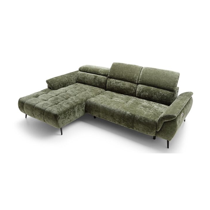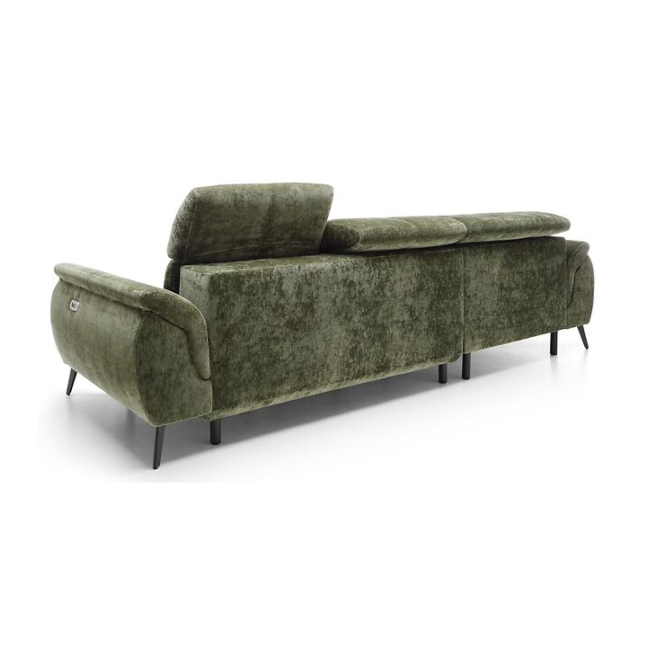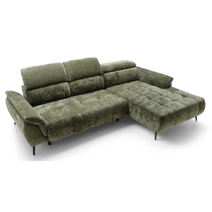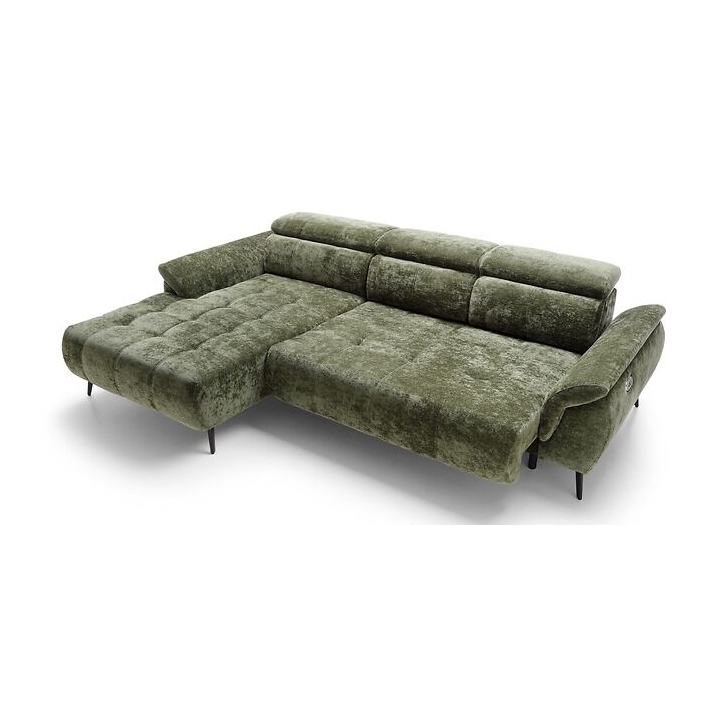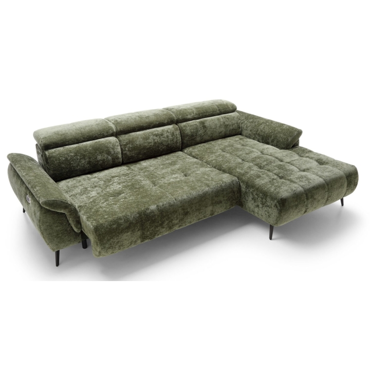 The model offers electric seat extension up to 25 cm, which makes it possible to create a comfortable space for relaxation. When extended, we obtain a sleeping surface of 225 × 92 cm, ideal for a short nap or rest. The pull-out is operated automatically, increasing the comfort of use. As an added bonus, the USB port on the side of the corner sofa makes it possible to charge your phone without having to get up from the sofa.