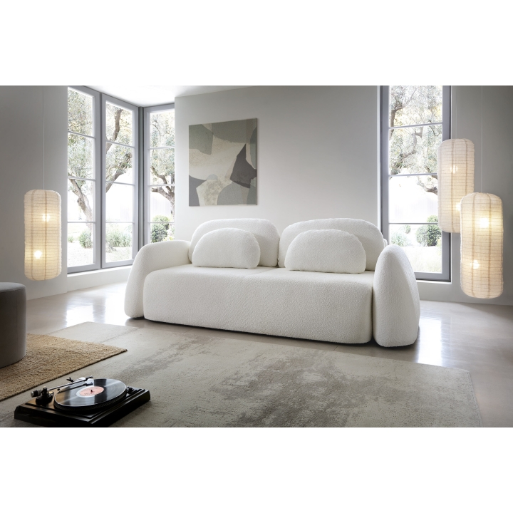 The Monsoon Pushman sofa is a combination of comfort, functionality and modern design, designed for everyday relaxation and comfort. The characteristically rounded sides, the 200cm wide and 72cm deep seat and the loose back cushions create a welcoming space for relaxation in the living room. Additional decorative cushions enhance the cosy effect and promote a calm atmosphere.