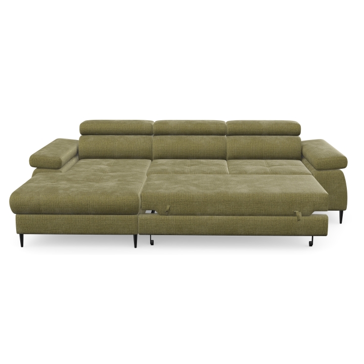 The Cordoba I corner sofa is 282 cm wide, 102 cm deep and 175 cm in the corner section, and its height ranges from 76 cm to 90 cm with the headrests unfolded. The seat, which is 215 cm wide and 47 cm high, uses profile corrugated springs and PU polyurethane foam to provide optimum support and comfort for everyday relaxation. The 213 x 126 cm sleeping surface allows guests to spend the night comfortably, and thanks to the dolphin-type mechanism, unfolding the furniture is quick and effortless.