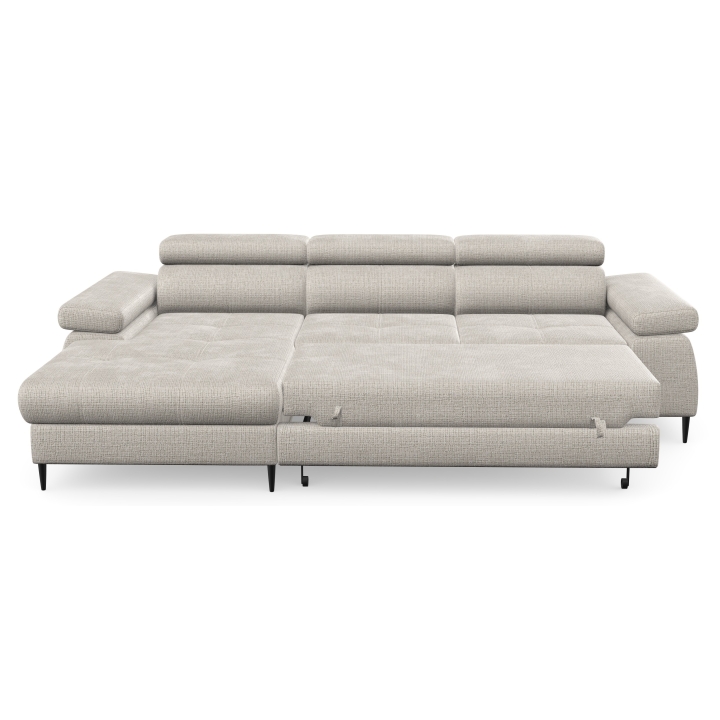 Cordoba I corner sofa is a proposal from the Puszman brand, which combines modern design with refined comfort of use. The furniture's distinctive, geometric form has been enriched with adjustable headrests and wide armrests, giving the whole a dynamic, expressive look. Black metal legs 13 cm high not only give lightness to the entire structure, but also make it easier to keep the living room tidy.
