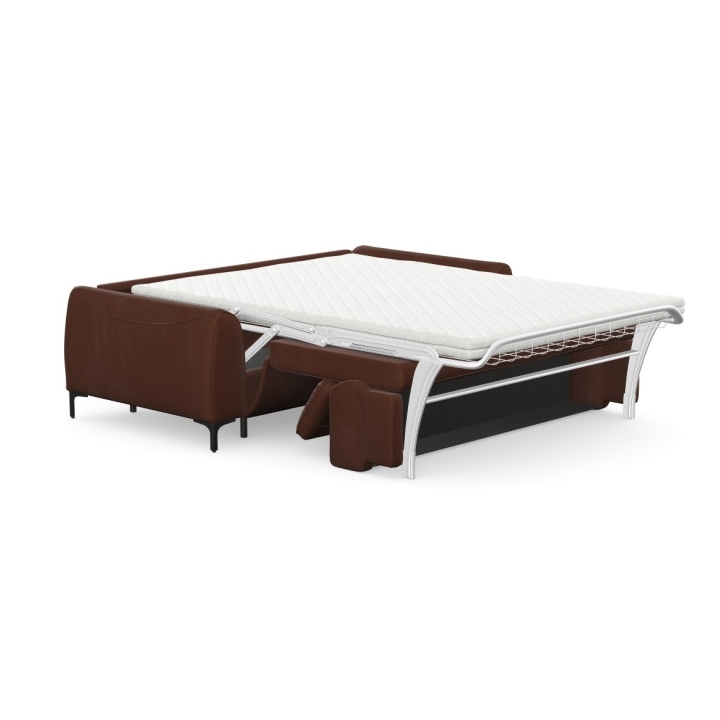 When unfolded, the Monza sofa converts into a bed with a sleeping surface of 200x140 cm, using a mechanism of the Italian frame type. This system works intuitively and effortlessly . You have to pull the backrest towards you, which allows you to unfold the metal frame with the built-in mattress, which remains hidden under the seat.