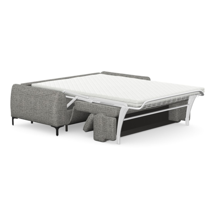 When unfolded, the Monza sofa converts into a bed with a sleeping surface of 200x140 cm, using a mechanism of the Italian frame type. This system works intuitively and effortlessly . You have to pull the backrest towards you, which allows you to unfold the metal frame with the built-in mattress, which remains hidden under the seat.