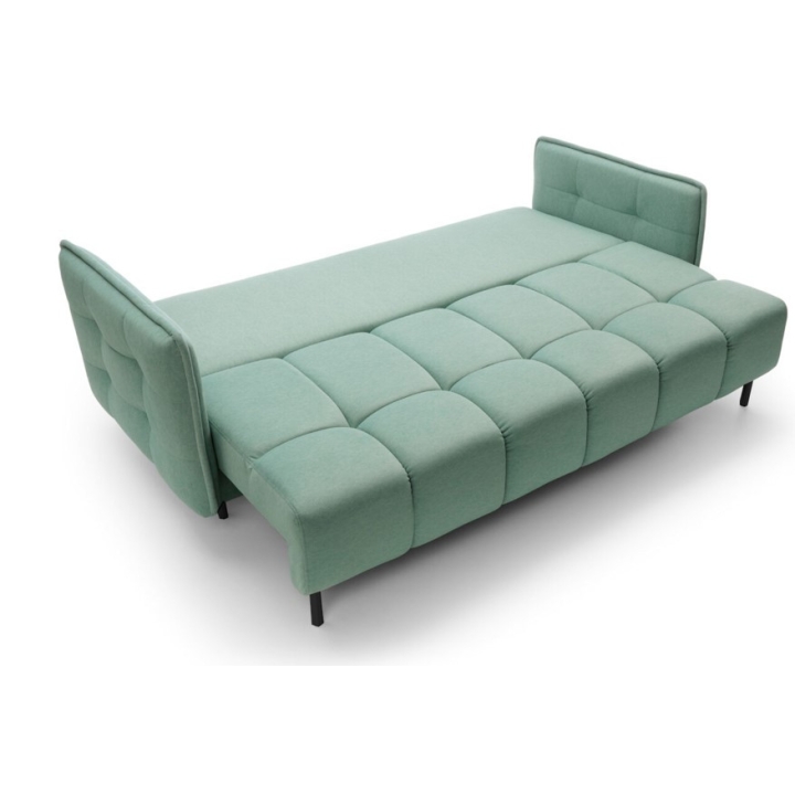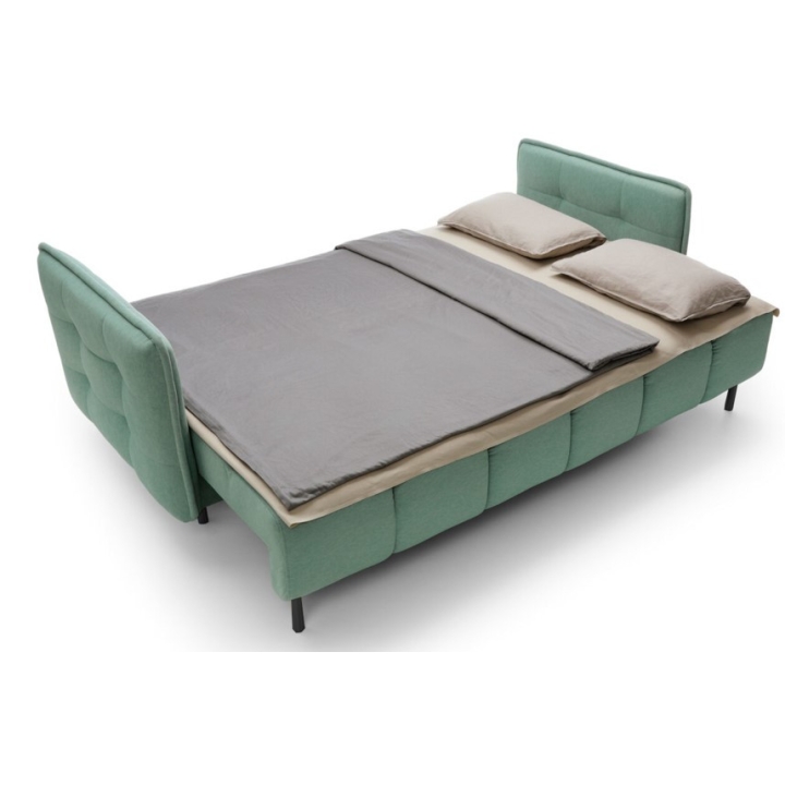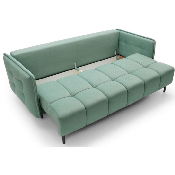 The sofa's total width is 222 cm, its depth is 94 cm and its height measured with the backrest is 92 cm. The DL type unfolding mechanism makes it possible to quickly transform the furniture into a 200x140 cm sleeping surface - the seat slides forward and the backrest folds into the space created when it is extended. In this way, the sofa can also serve as an additional sleeping area.