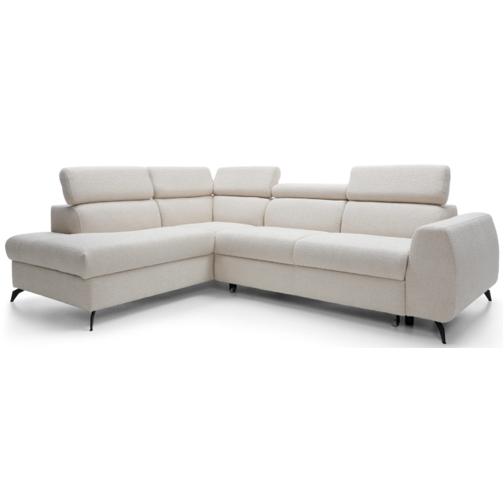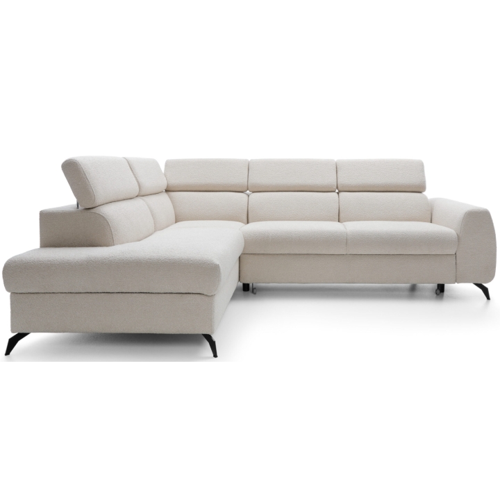 The Stille Pushman Fast Shipping corner sofa is a modern piece of furniture distinguished by its unusual lines and striking metal legs in black. The model was designed with the comfort of everyday relaxation and the aesthetics of modern interiors in mind. Equipped with five independently adjustable headrests, it allows for perfect adjustment of head and neck support for each user.
