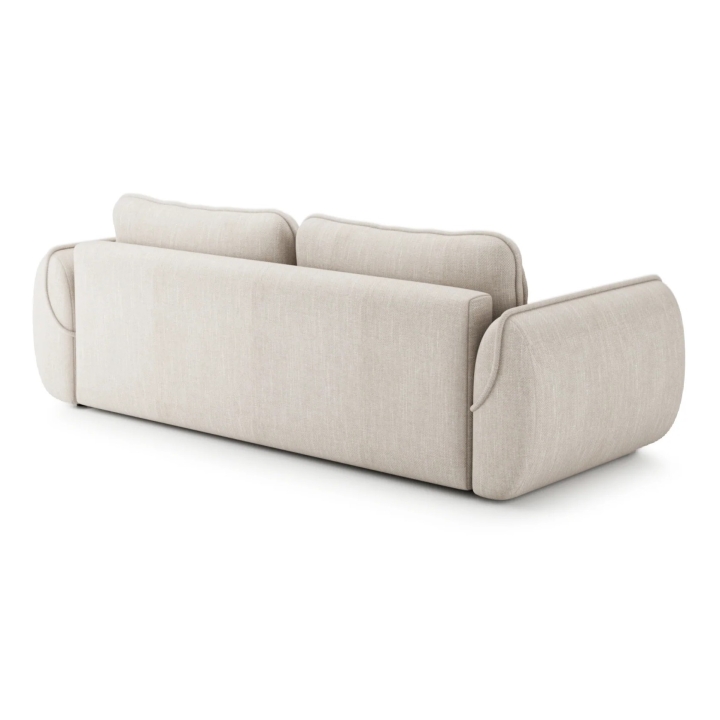 The sofa conceals a DL-type unfolding mechanism, enabling a sleeping surface of 200x160 cm. This system allows the seat to be smoothly extended and the backrest to be folded, providing space for sleeping. There is also a bedding container inside the structure to organise the space.