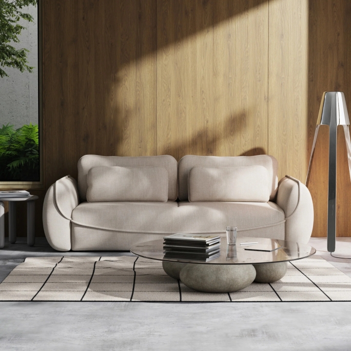 The Umea sofa by Pushman attracts attention with its soft, organic silhouette that softens the space and brings a balanced rhythm to the interior. The rounded lines create a visually pleasing form that fits perfectly into contemporary design concepts. The furniture body has been designed with relaxation in mind - its overall width is 257 cm, height 92 cm and depth 108 cm.