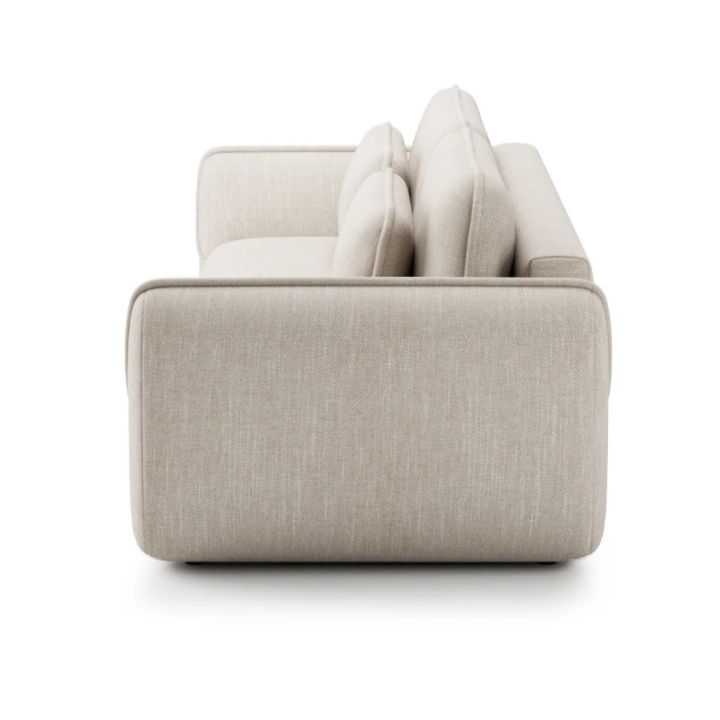 The distinctive stitching that connects the seat to the sides gives the sofa a sense of depth and enriches its texture. The wide, solid armrests not only provide comfortable support, but also enhance the expression characteristic of sofas with a distinct presence. The included lumbar cushions fit naturally into the soft lines of the furniture, enhancing the pleasure of use.